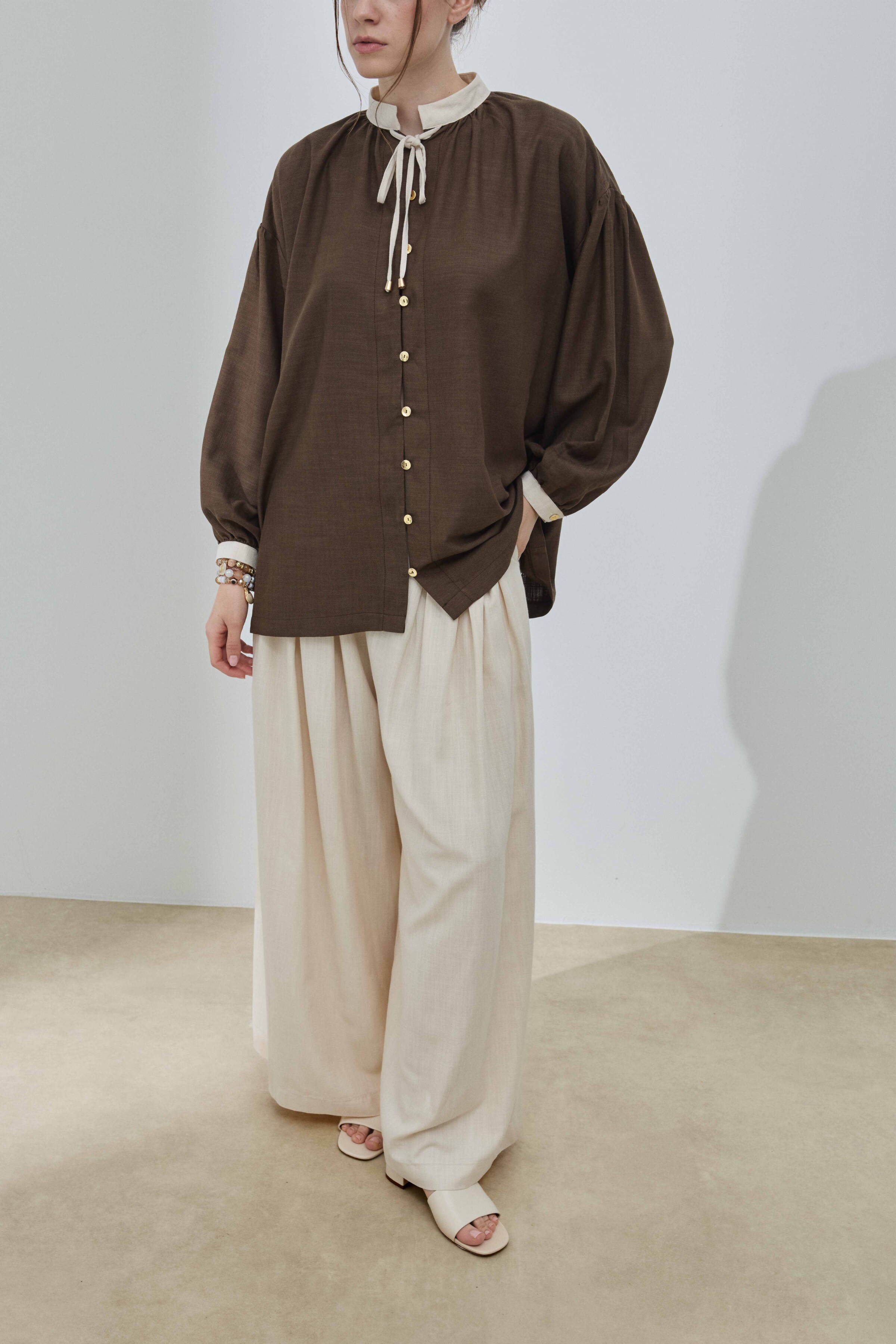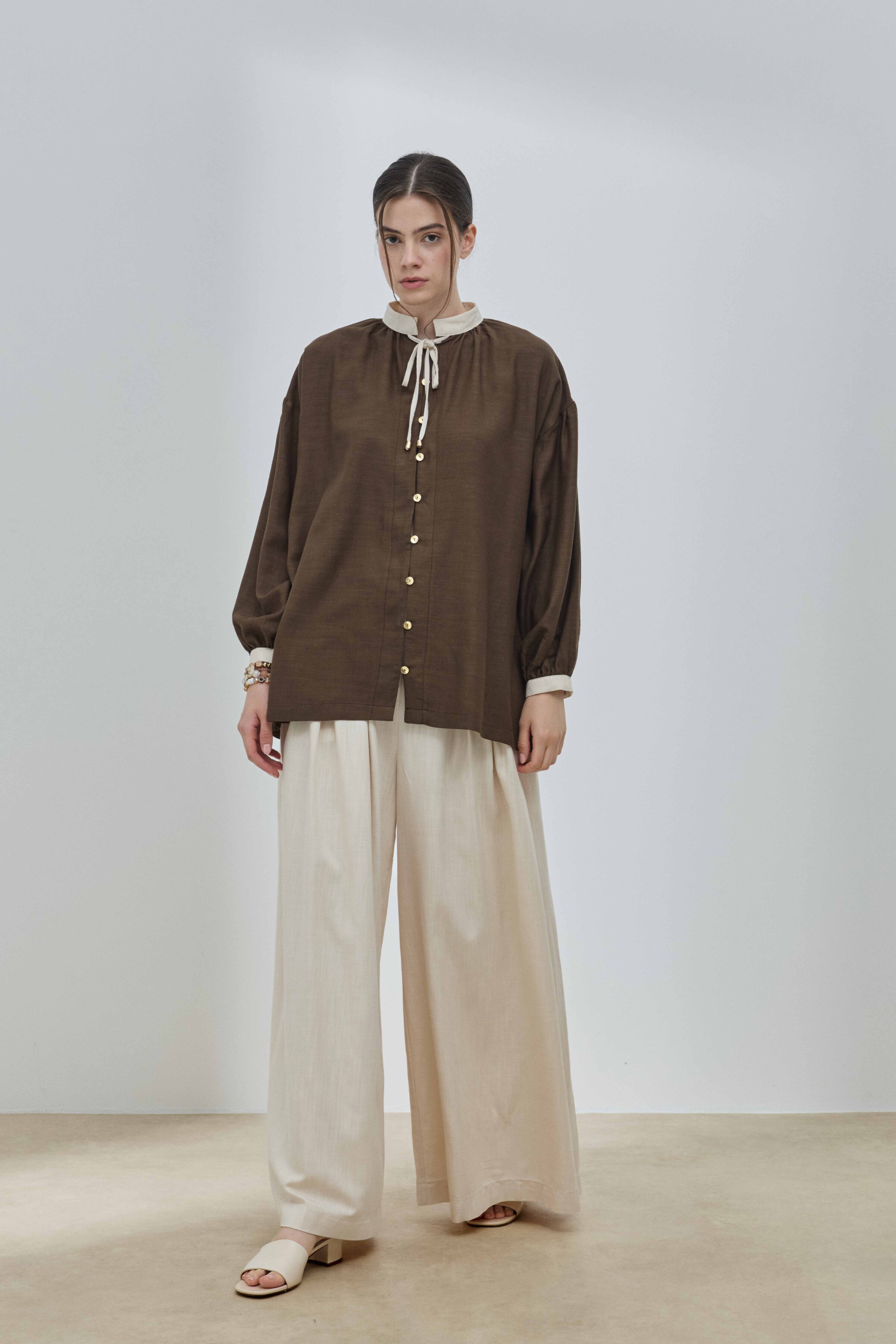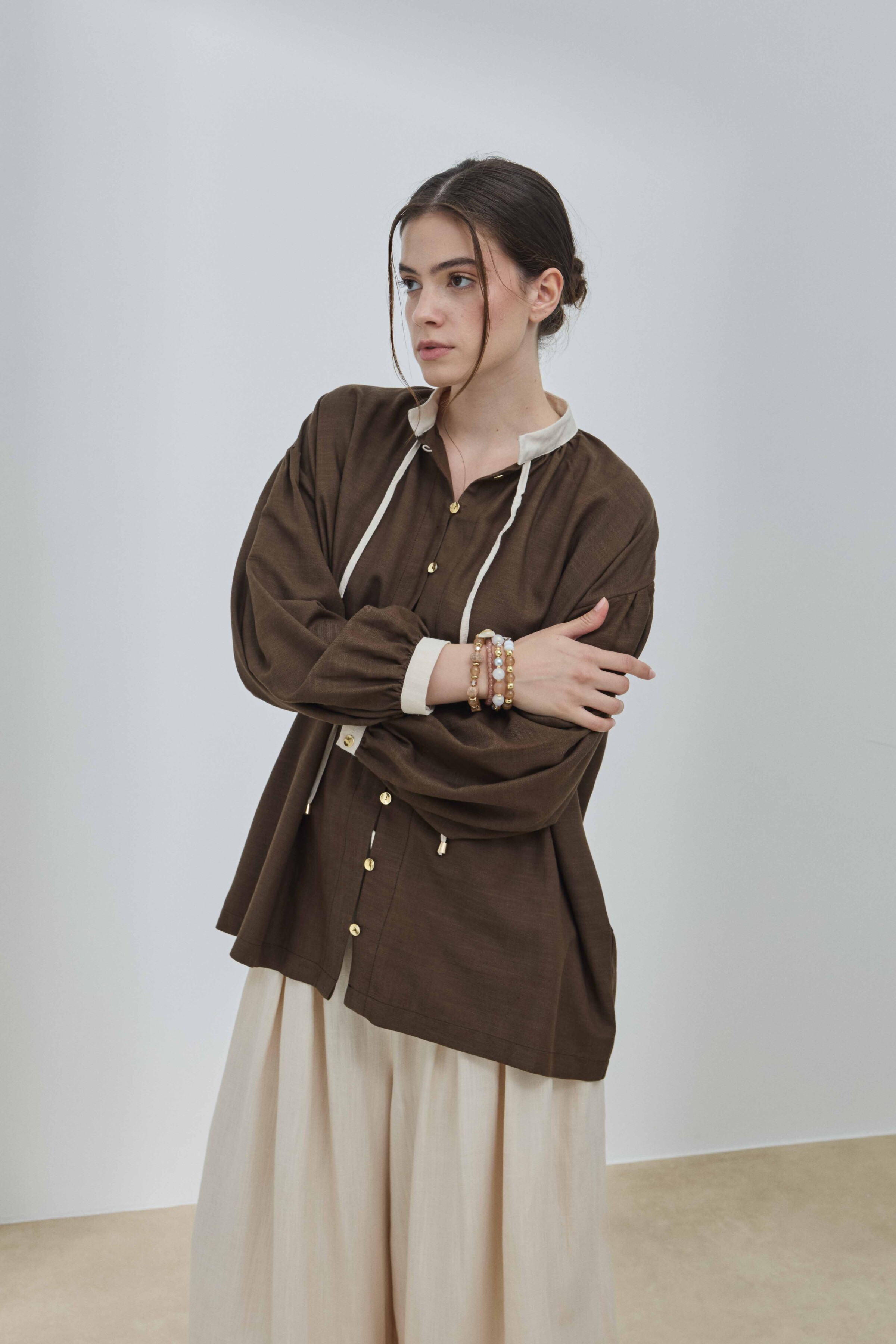 En sevilen gömlek modeli kontrast garni detayıyla farklı bir görünüme ulaştı ve bu yazın vazgeçilmez parçası olmak için seni bekliyor. Ethereal Roots koleksiyonunun minimal ve zamansız çizgilerini taşıyan doğal kumaş kontrast biyeli gömlek uzun yıllar seninle!