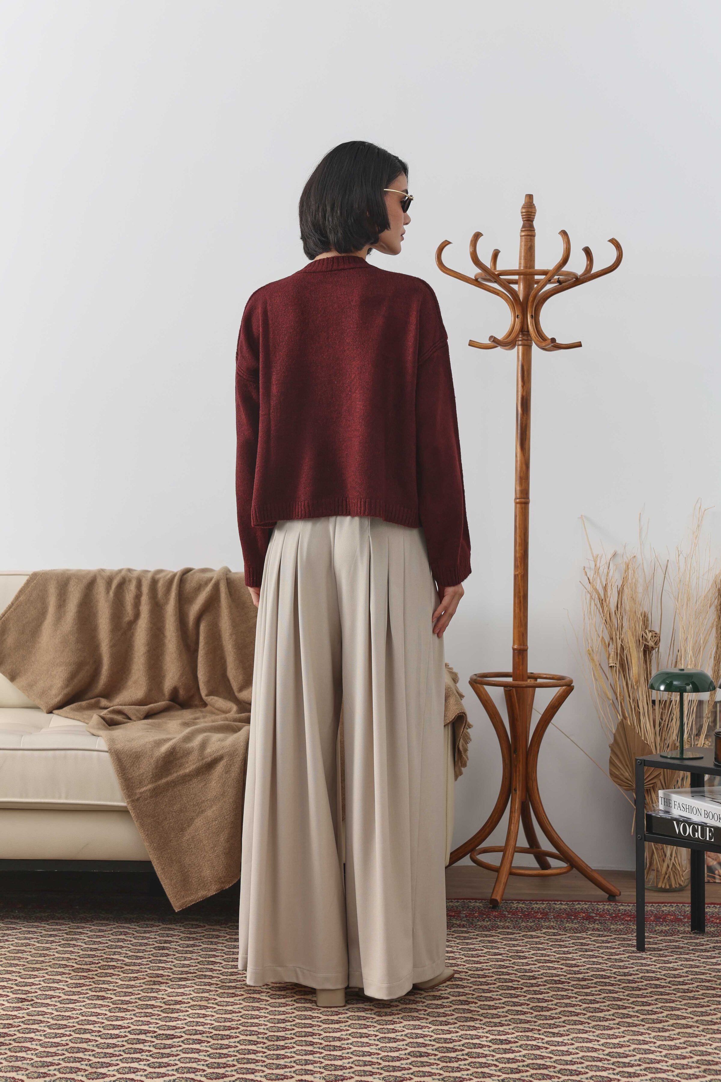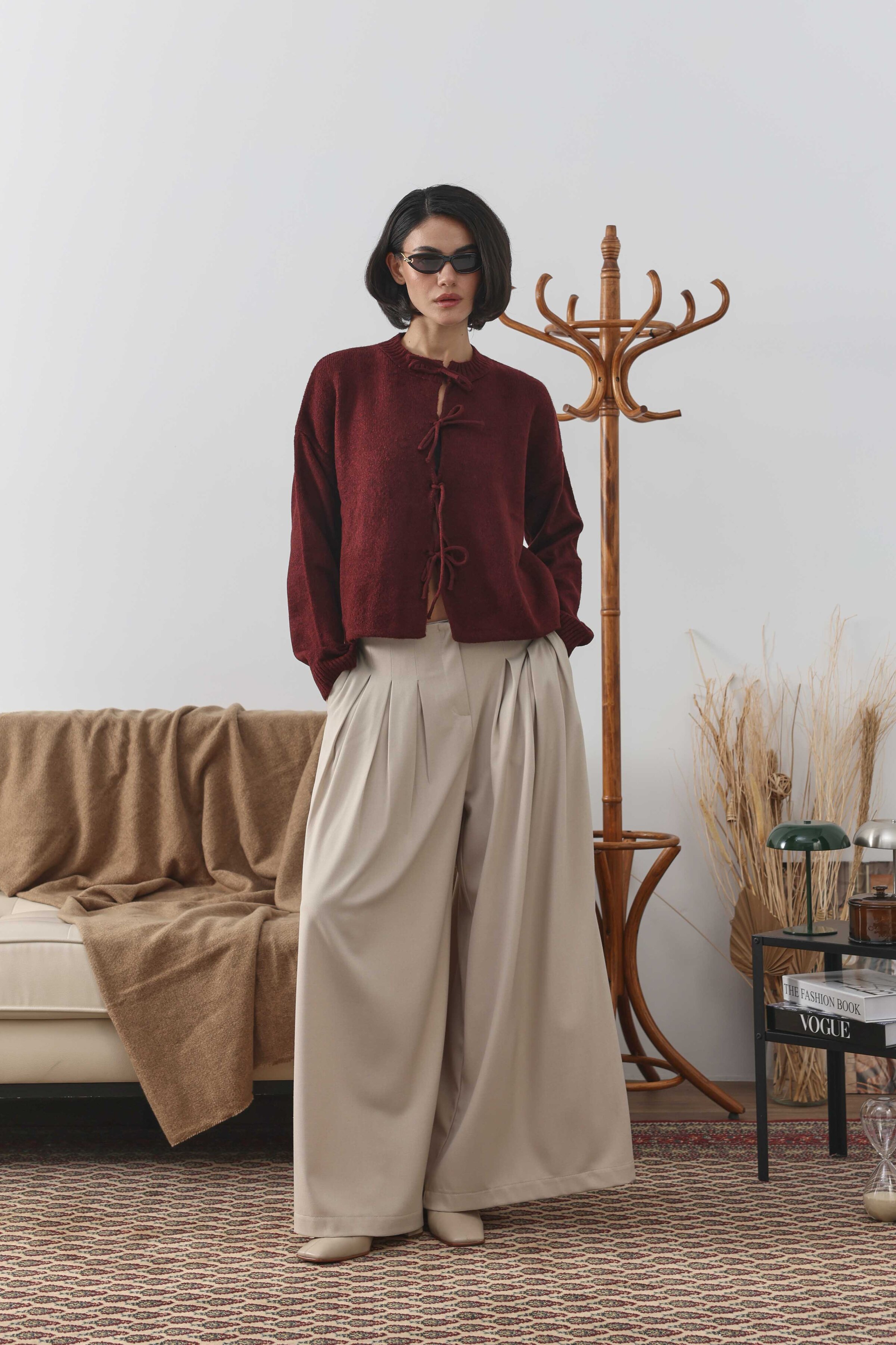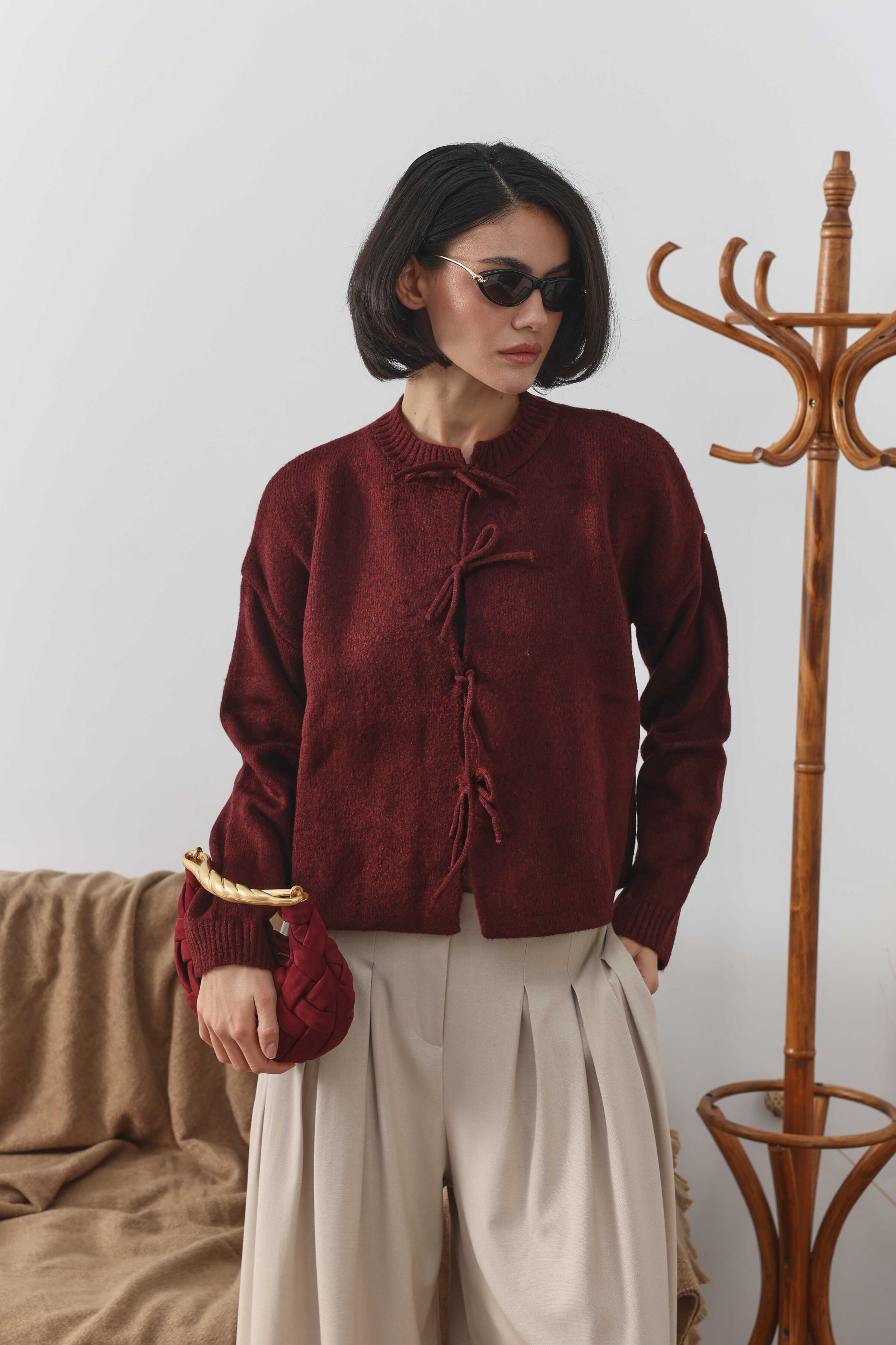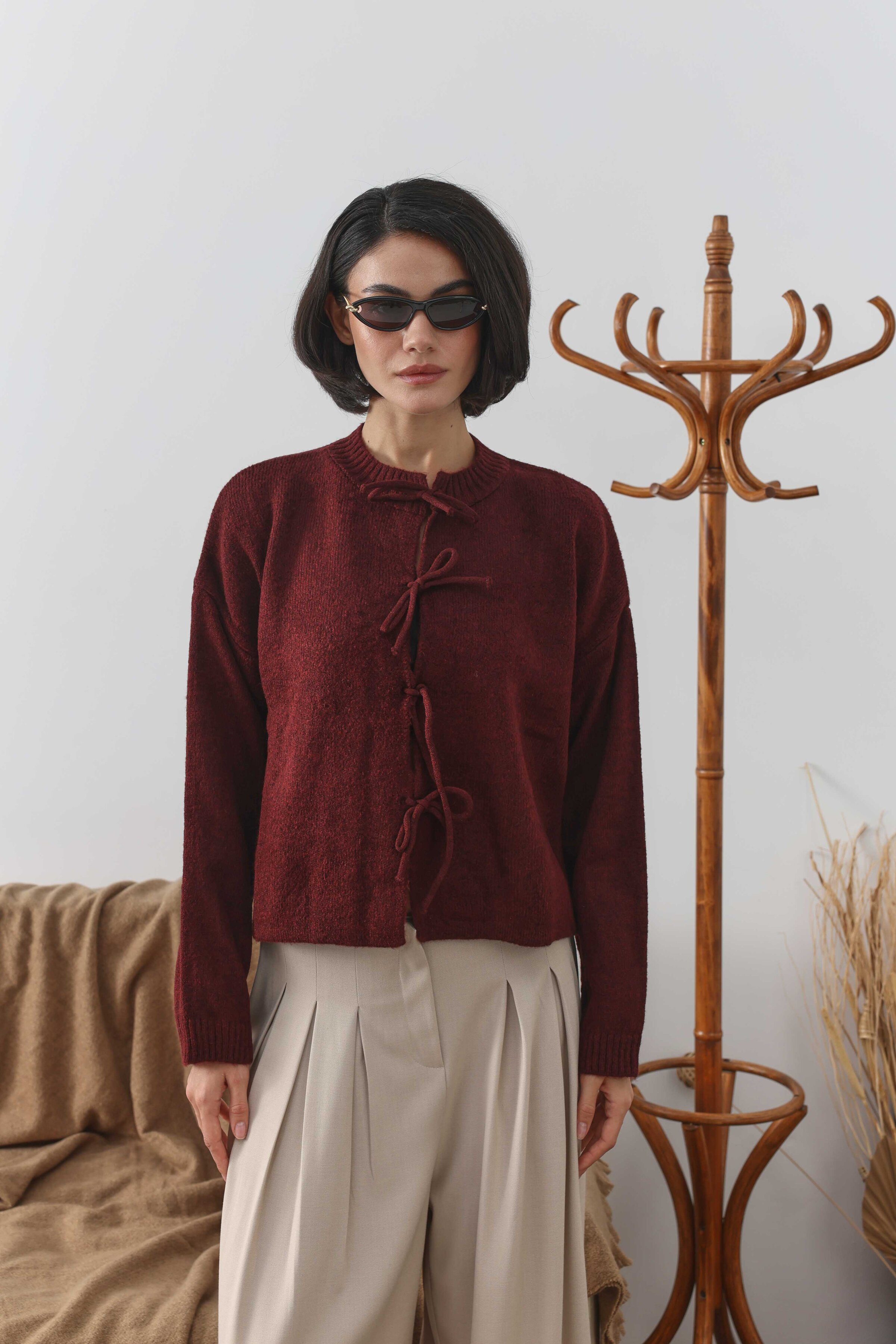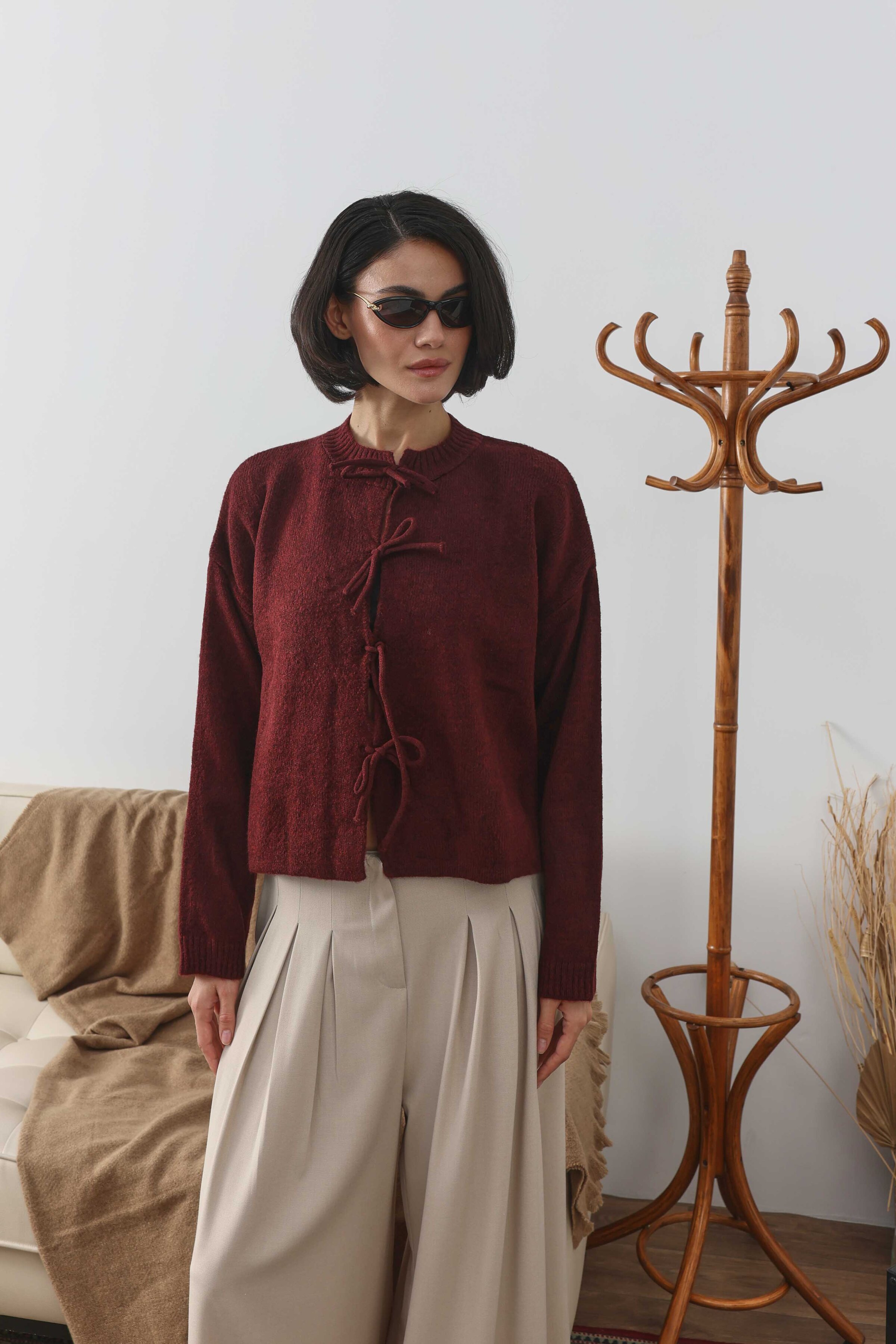 Bağcıklı Kısa Hırka Bordo