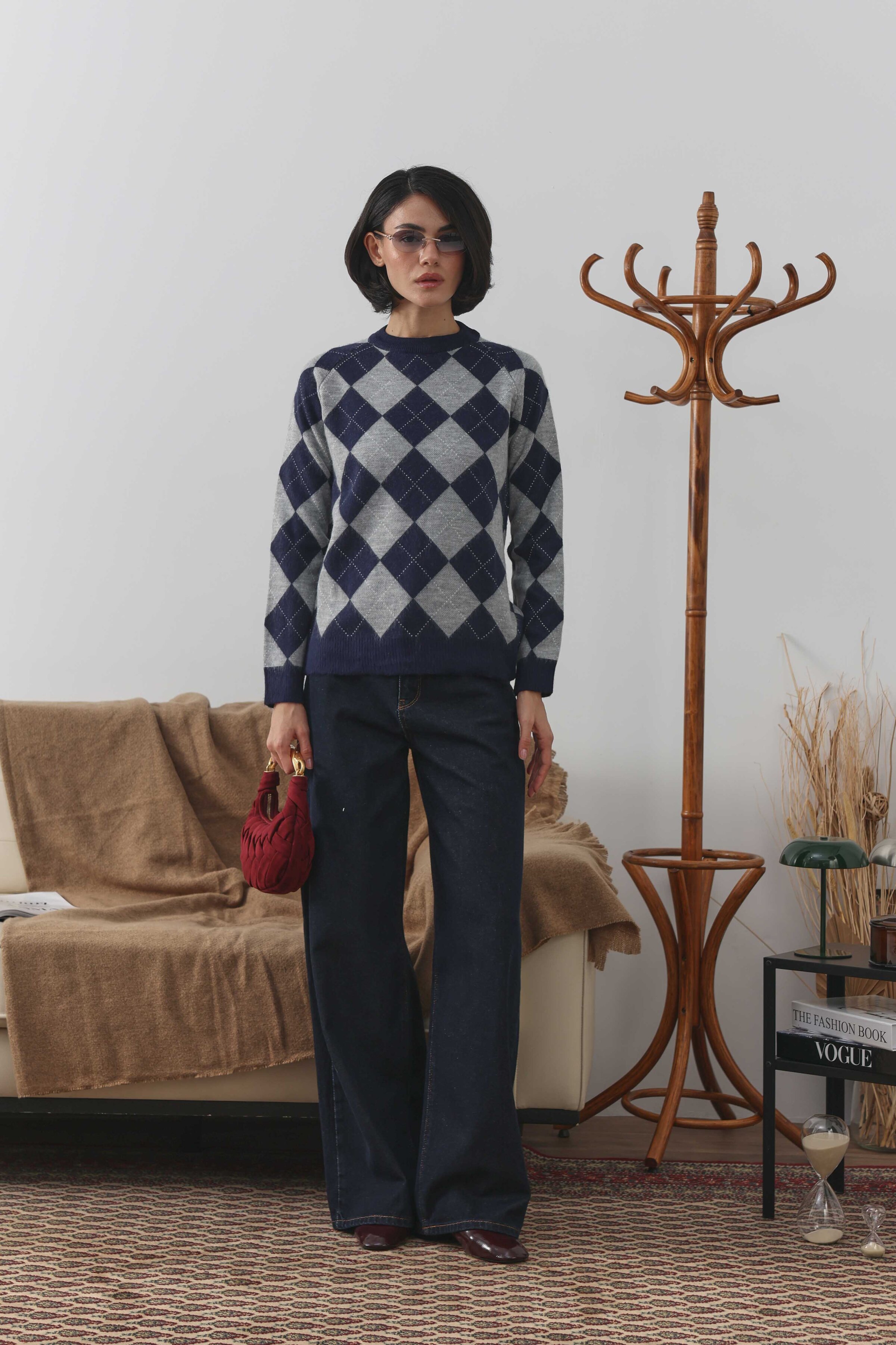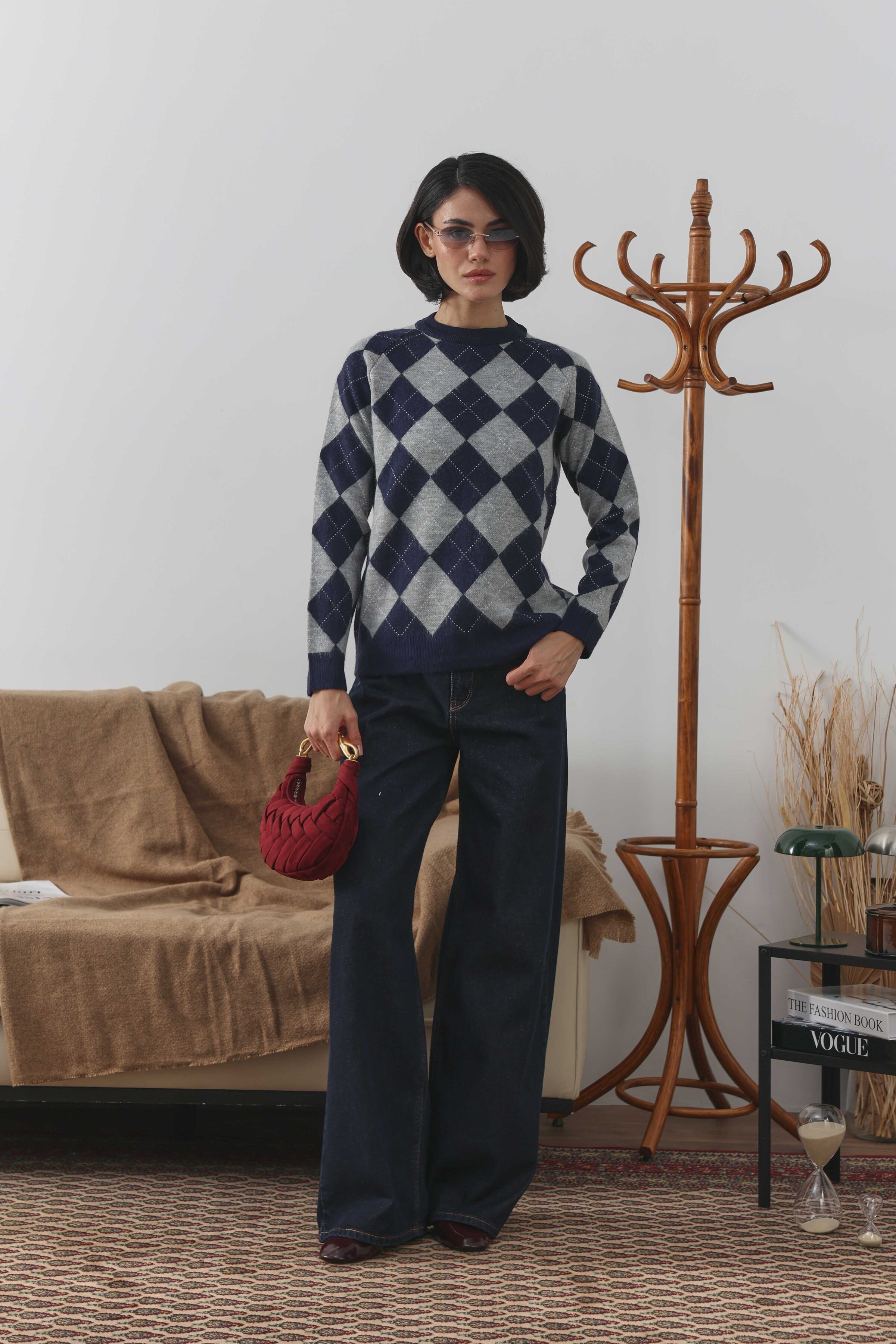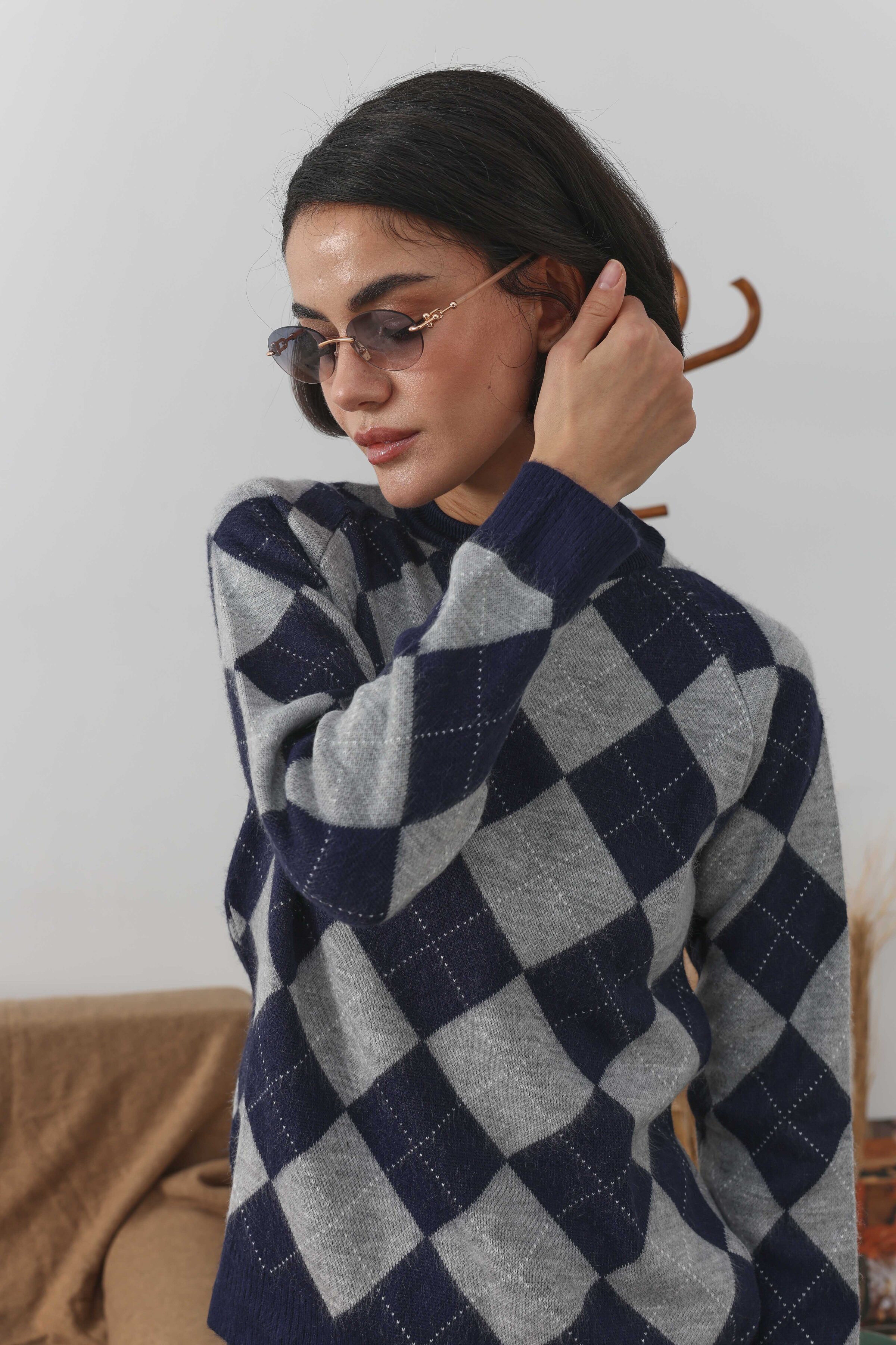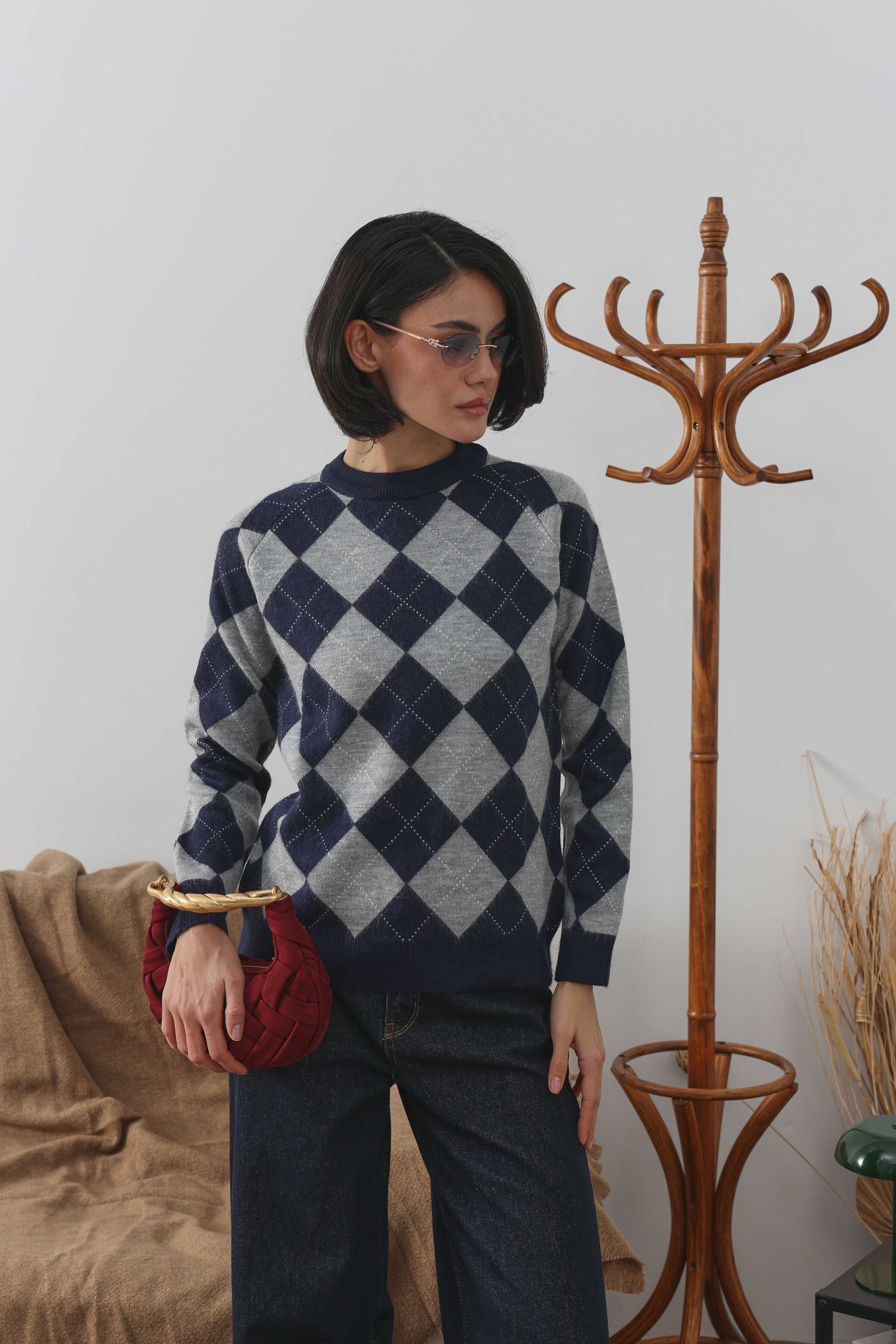 Baklava Desenli Kazak Gri