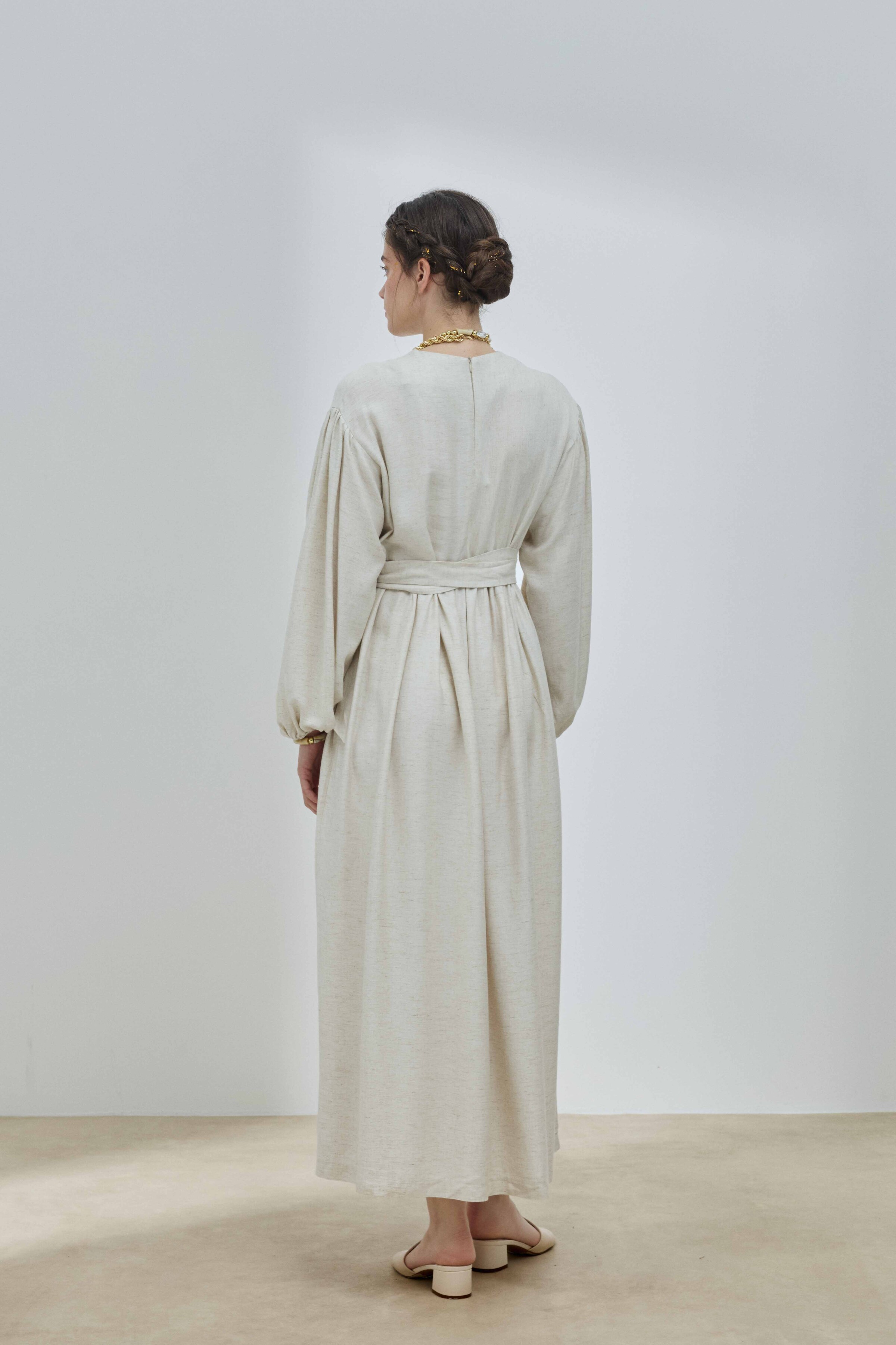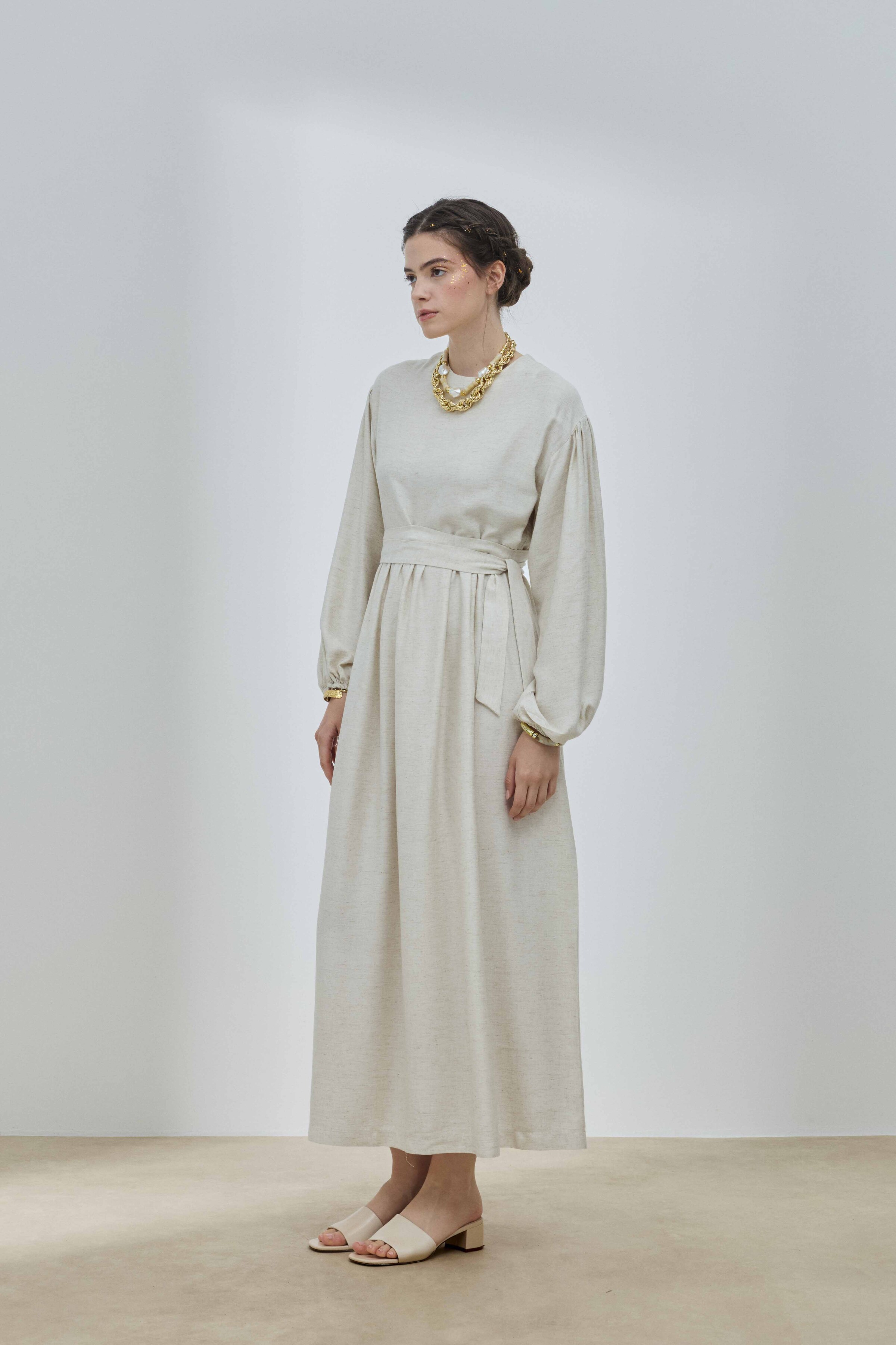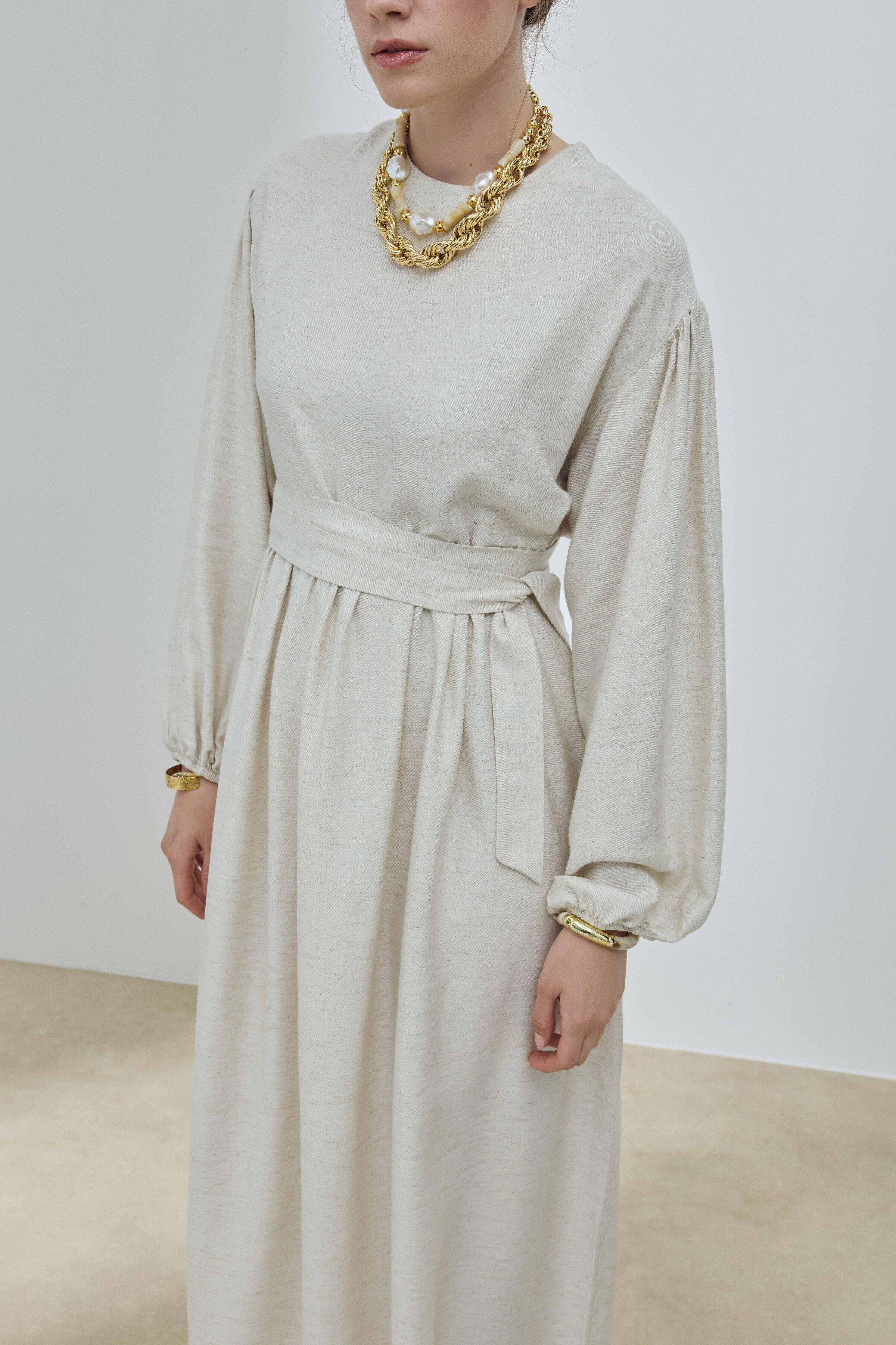 Balon kol modeli ve geniş dökümlü eteği ile ister şık istersen günlük giyiminde sana eşlik edecek Bej Balon Kol Keten Elbise seninle! Özel dokuma keten ve viskon karışımlı kumaşın dokusu bütün Yaz doğallığı ile seni rahat hissettirecek.