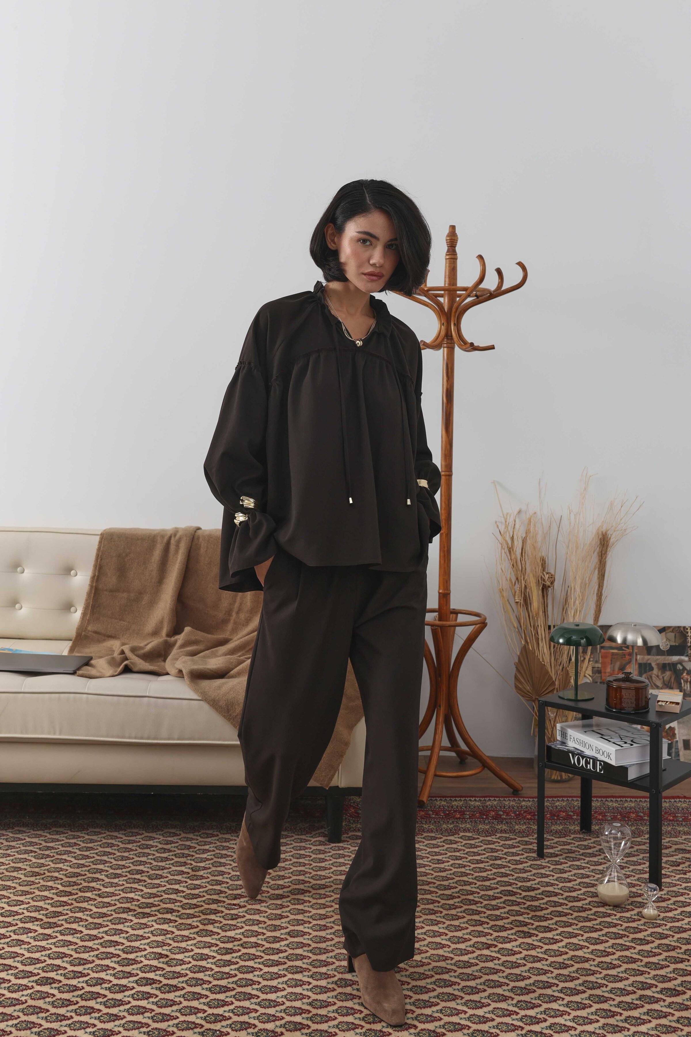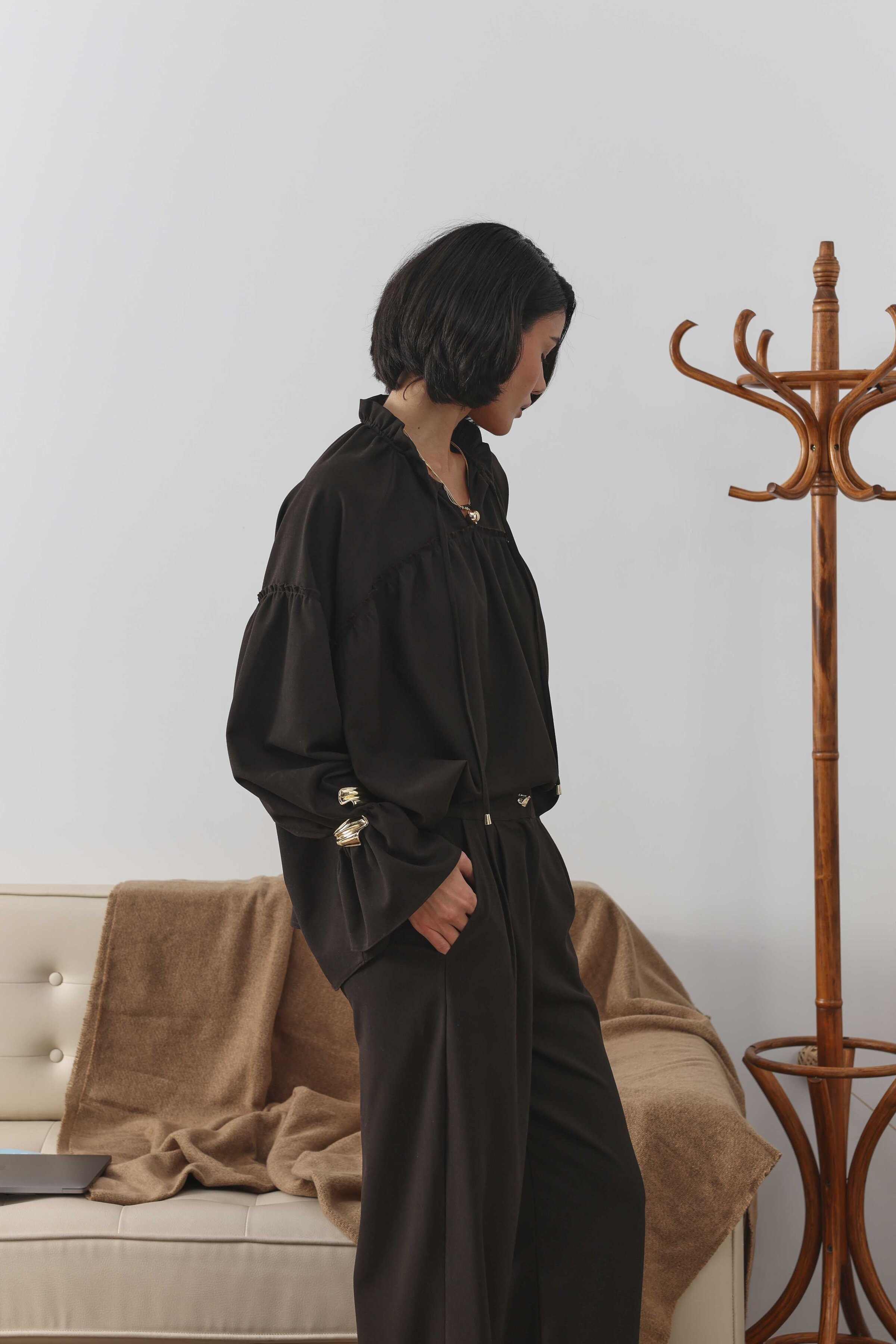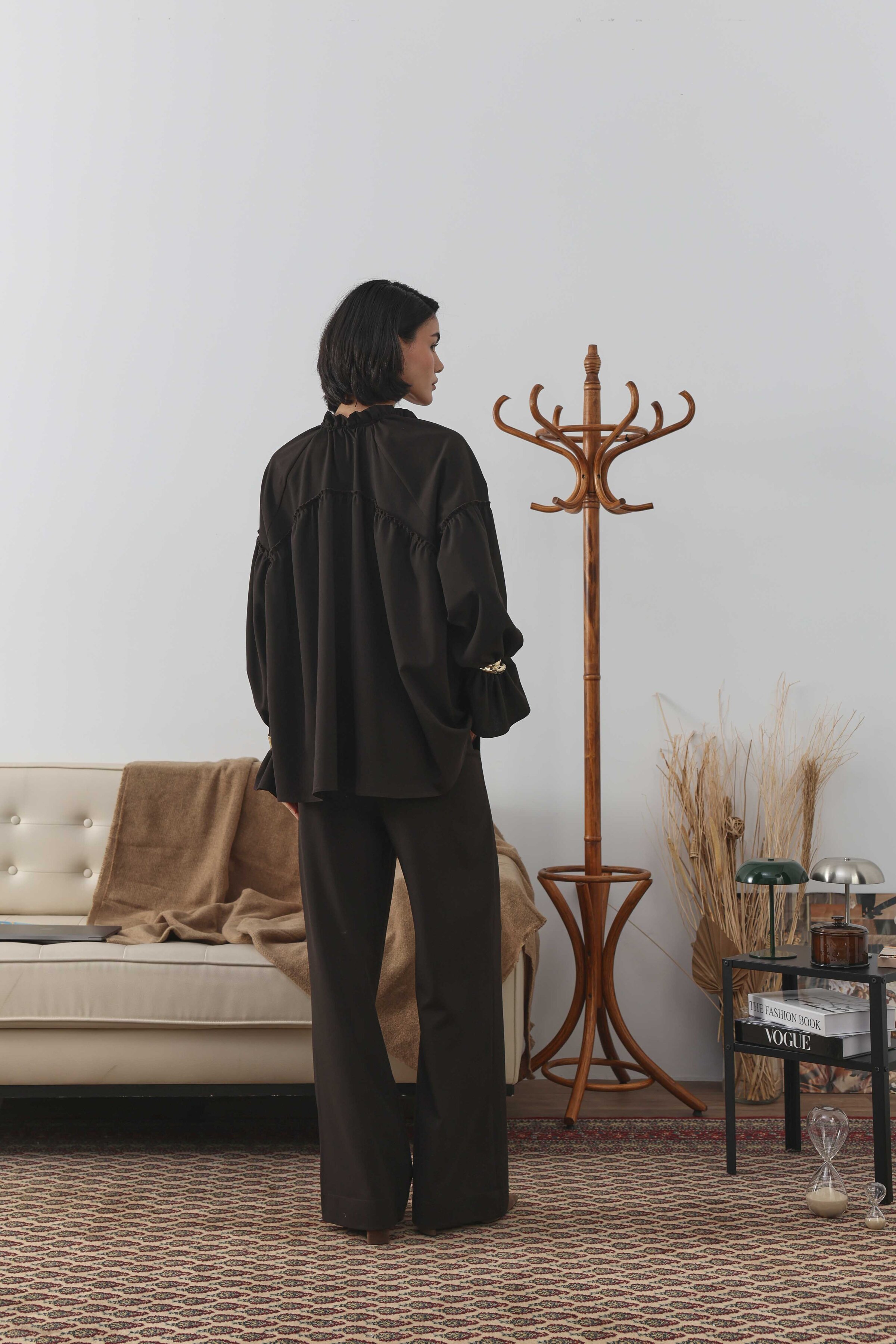 Görünümüne romantik bir dokunuş yapmak istersen büzgü ve volan detaylı bluz tam sana göre. Elevated Essence koleksiyonunun minimal ve zamansız çizgilerini taşıyan büzgülü volanlı bluz uzun yıllar seninle!