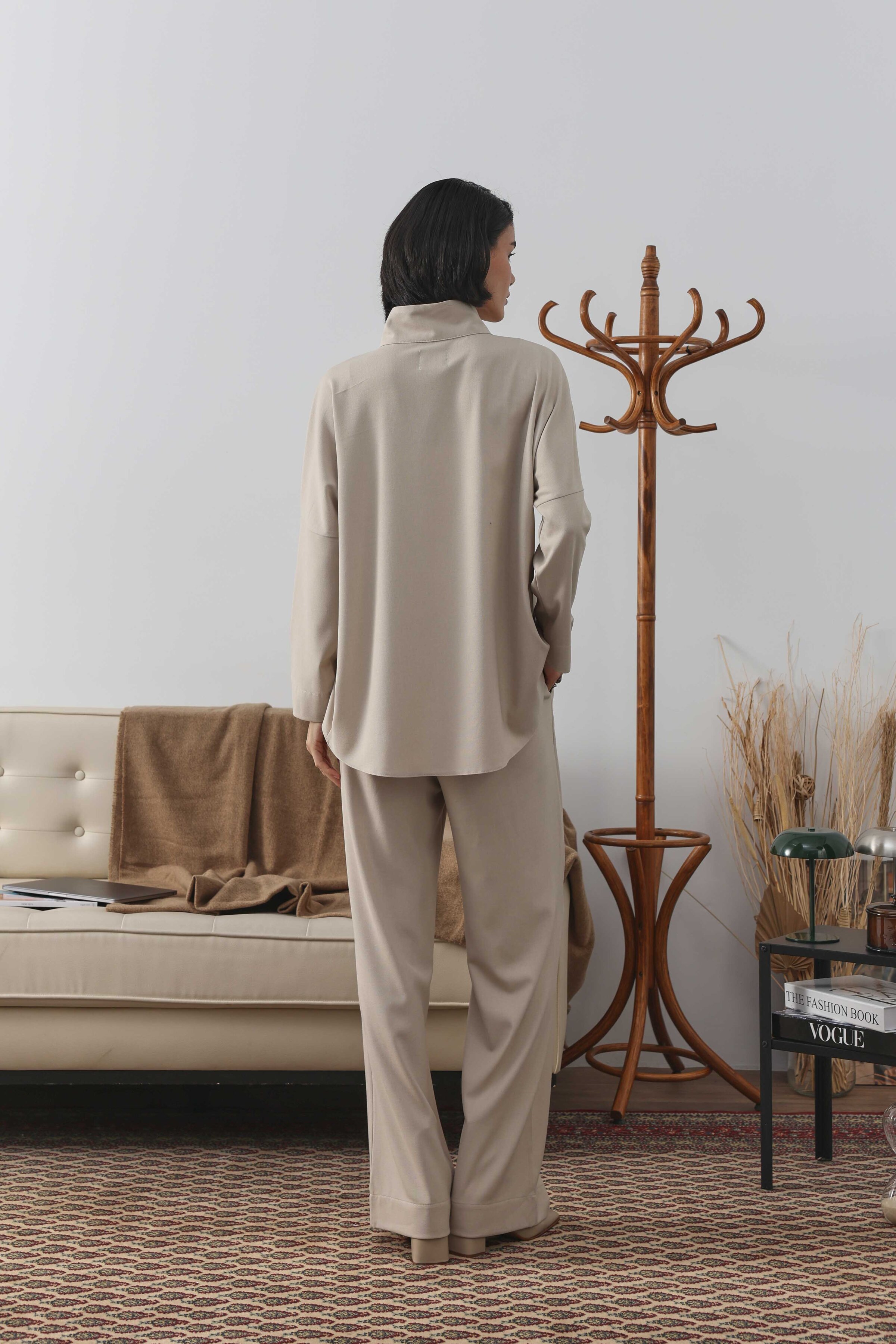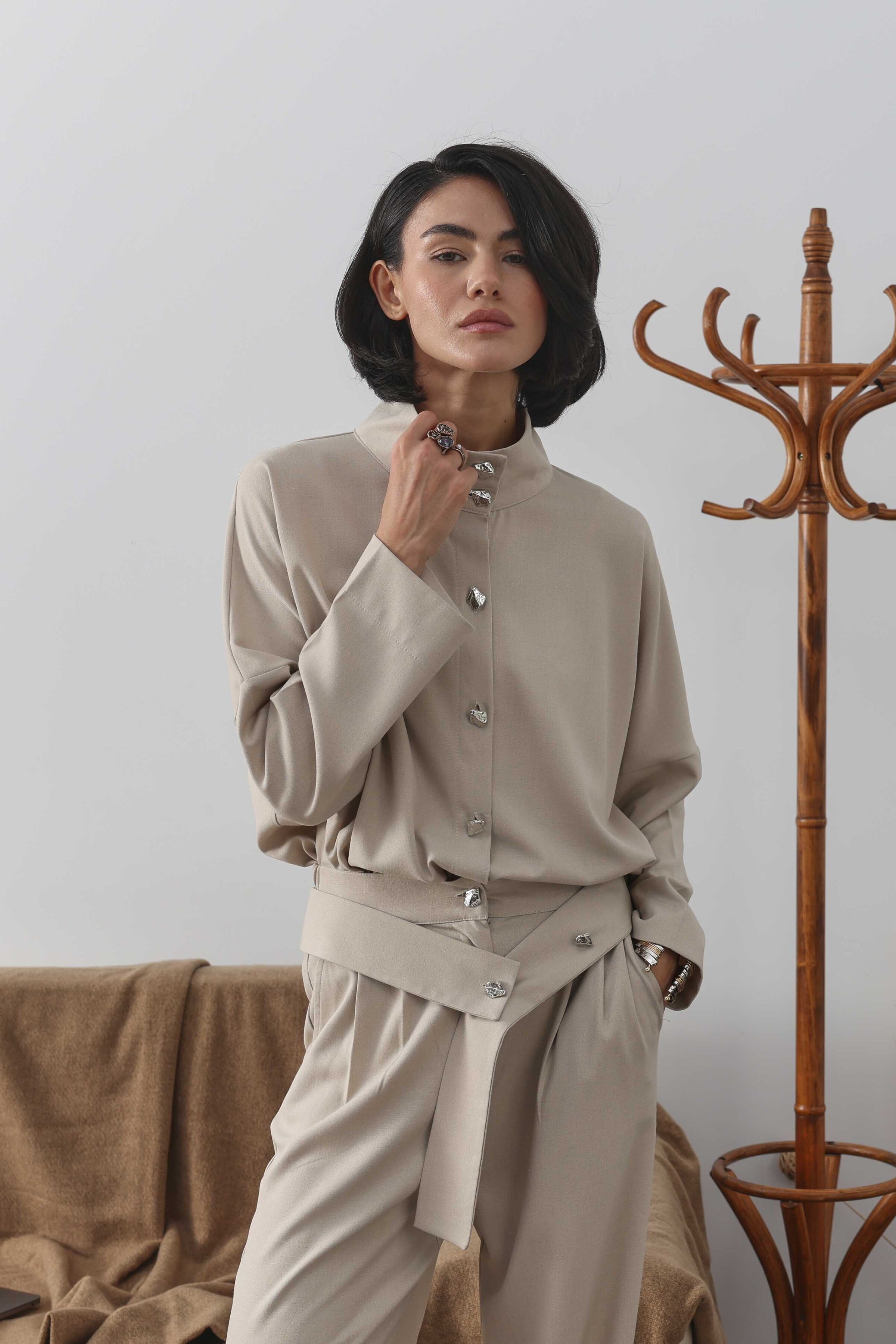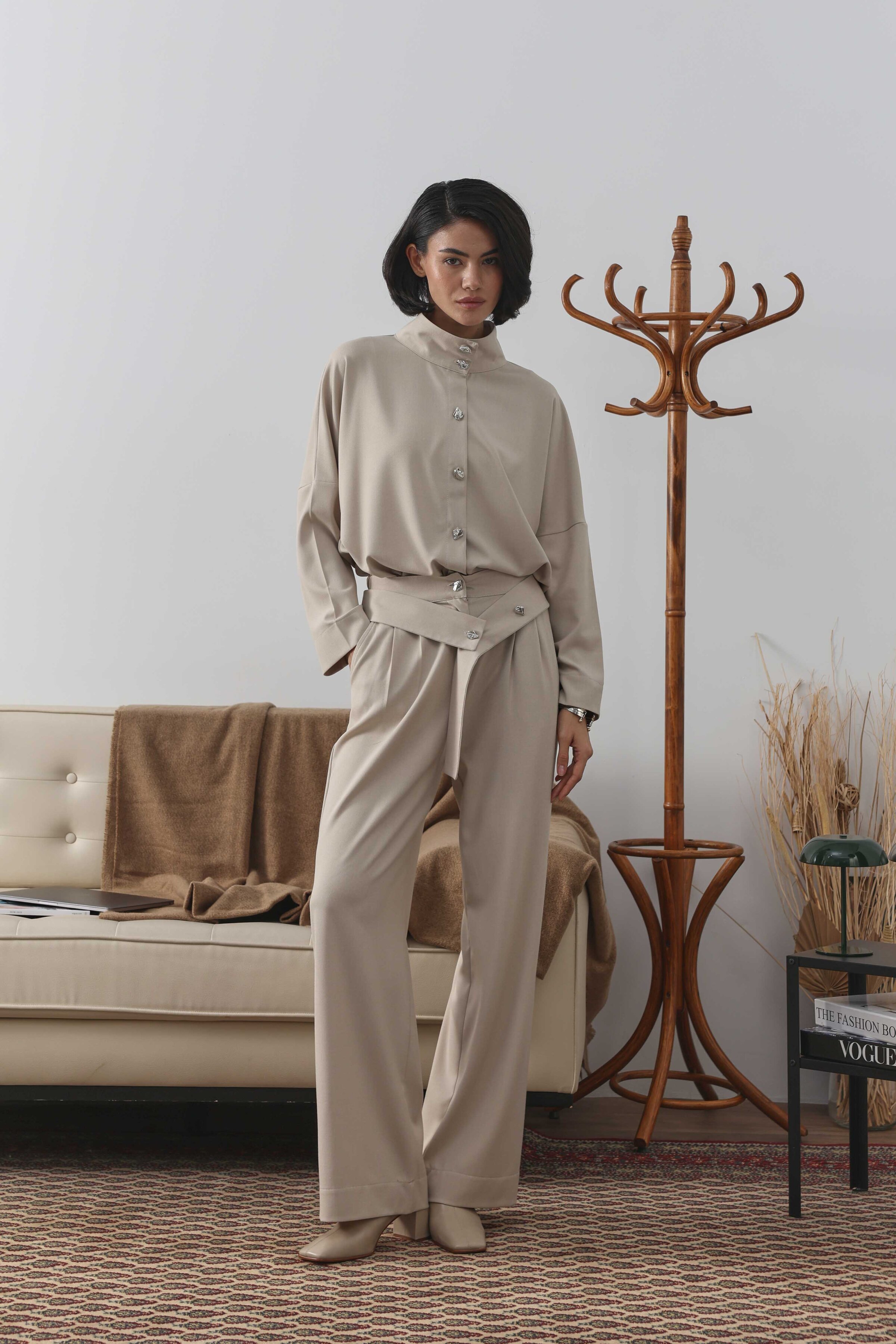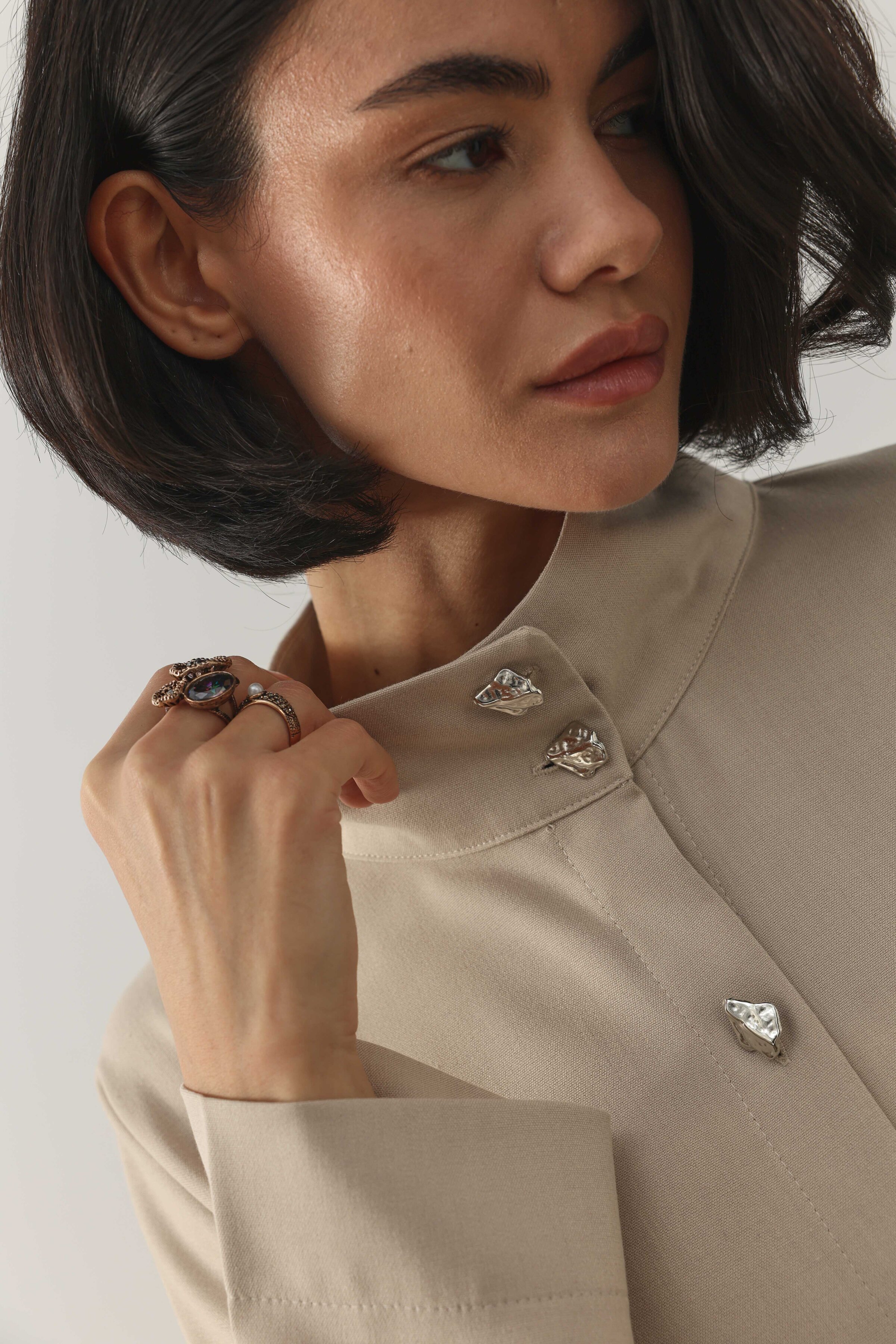 Uzun ömürlü kumaş ve özel kaplama metal düğmelerin uyumu, dik yaka ceketin zamansız modeliyle birleşerek dolabının vazgeçilmezi olacak Dik Yaka Ceket seninle! Palazzo pantolon ile rahatlıkla kombinleyebilir, kemer detayıyla görünümünü farklılaştırabilirsin. Zamansız ve minimal şıklıkta parçaları tercih et kapsül dolabında moda baskısından uzak uzun ömürlü ürünlere yer ver.