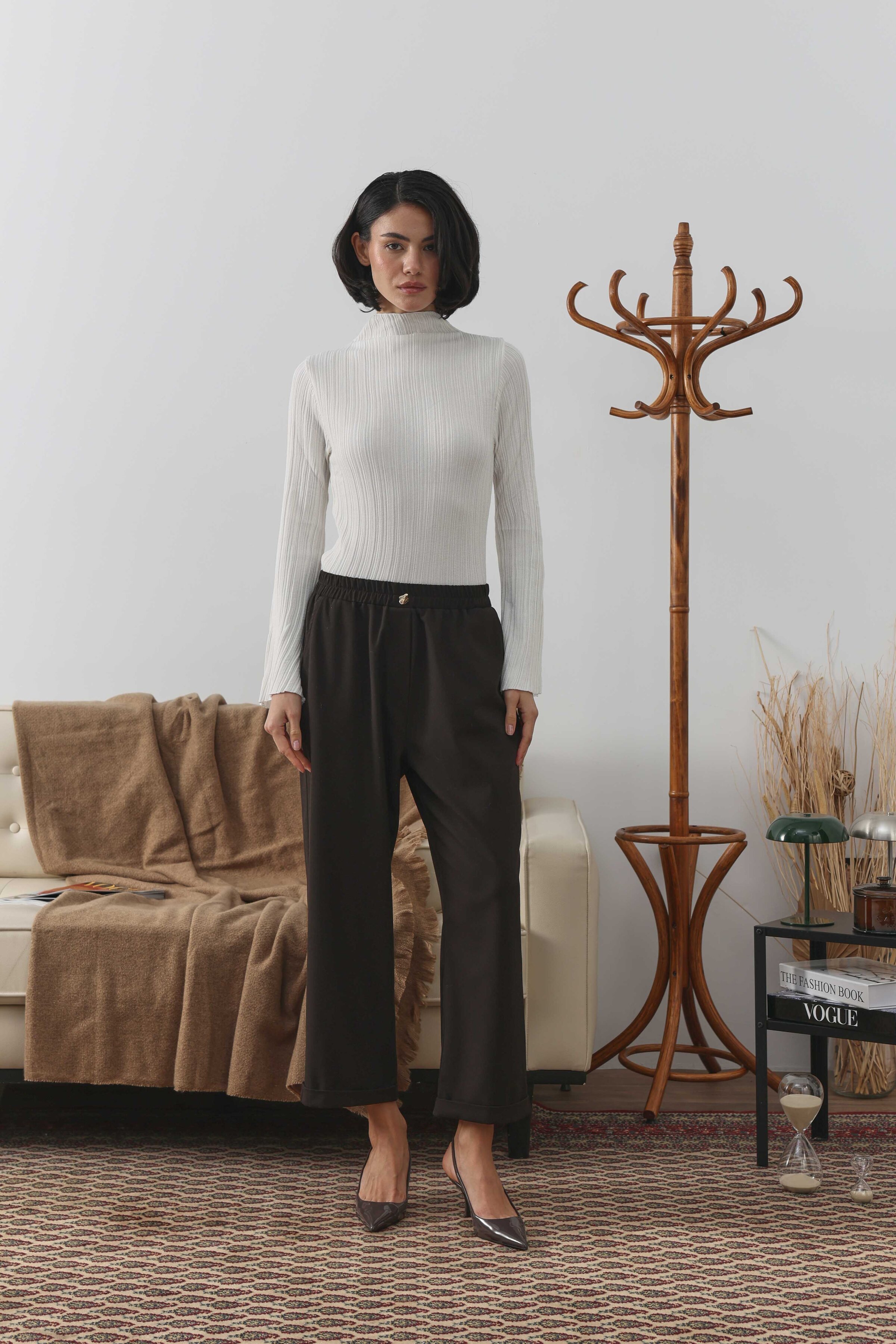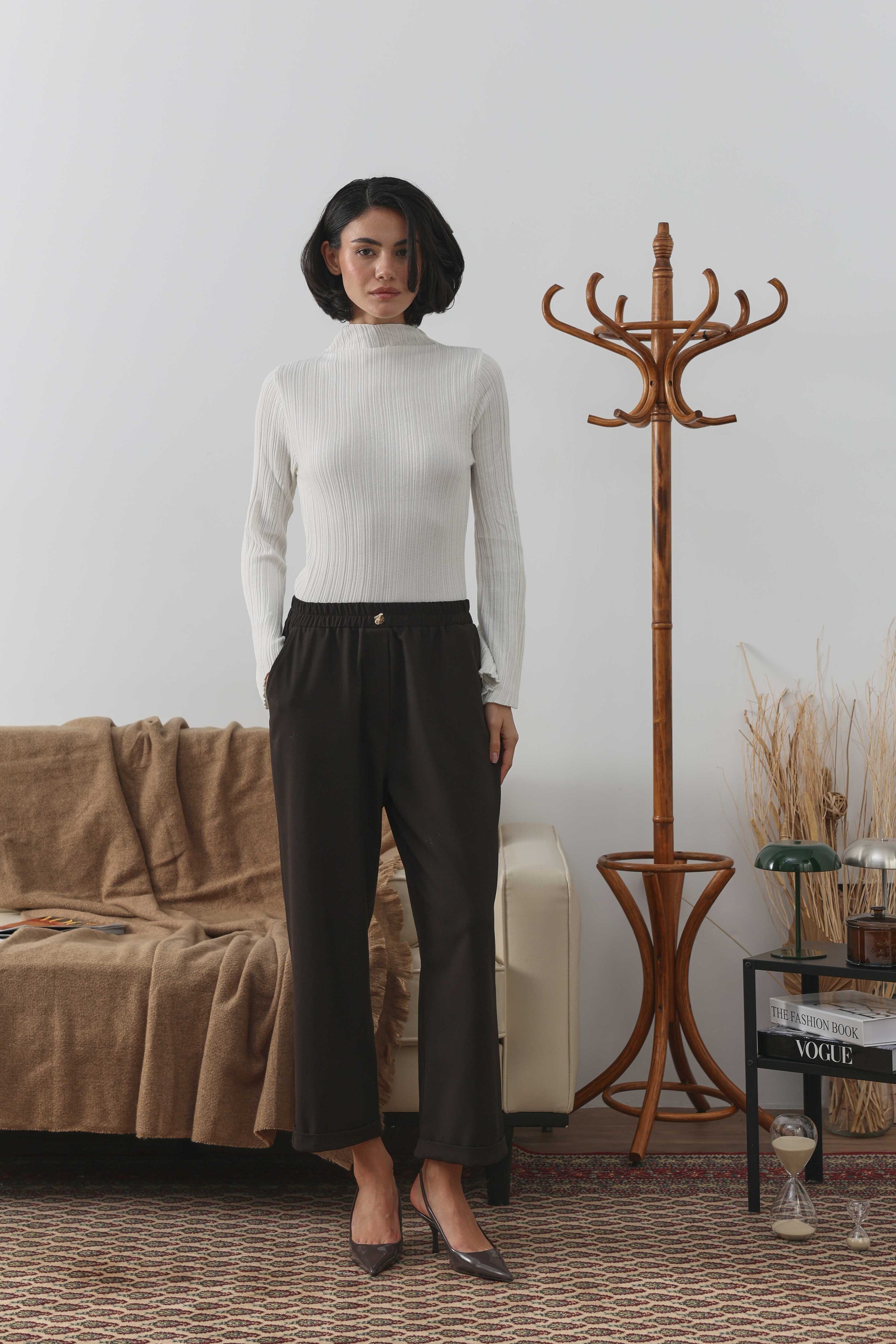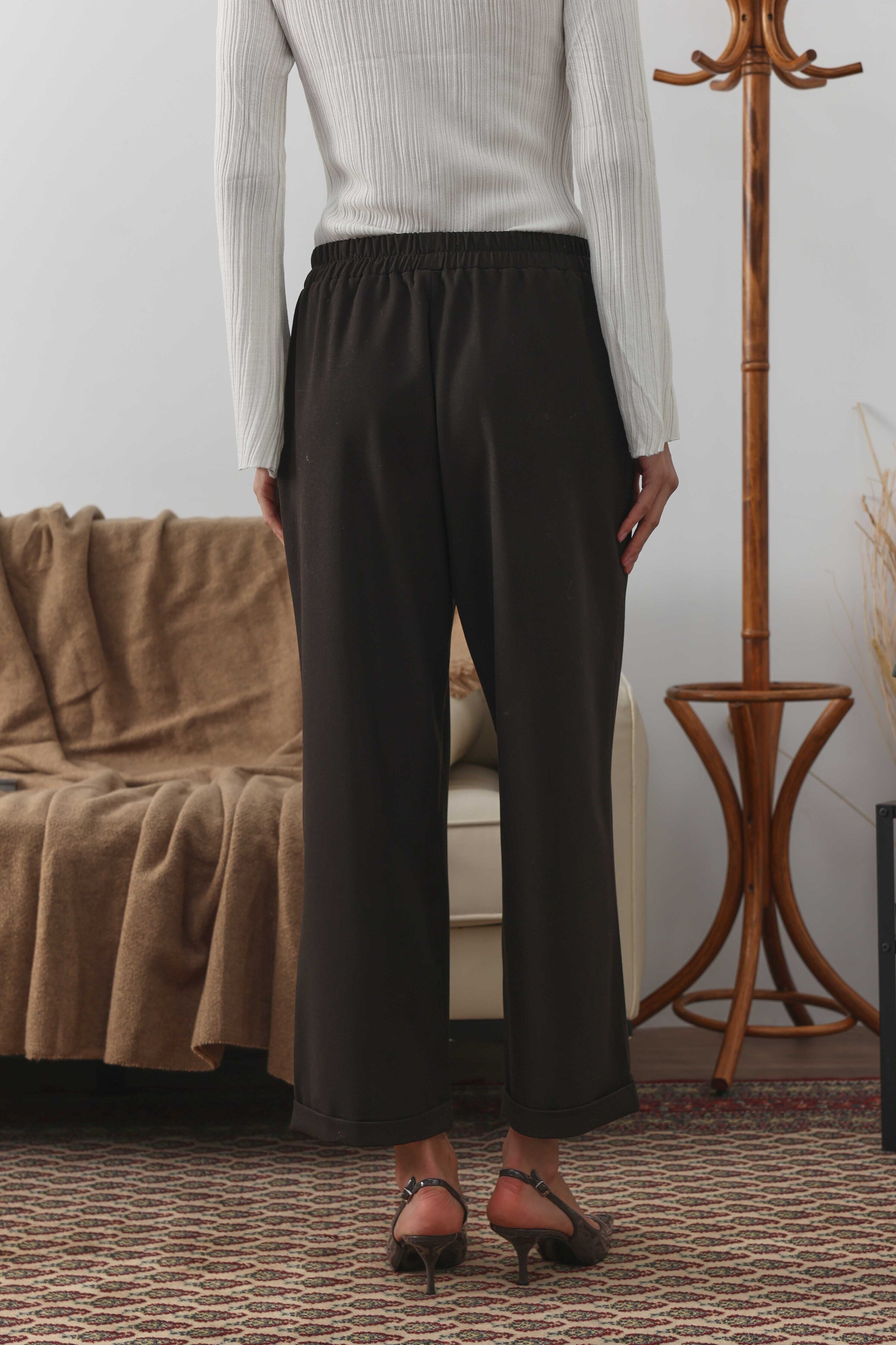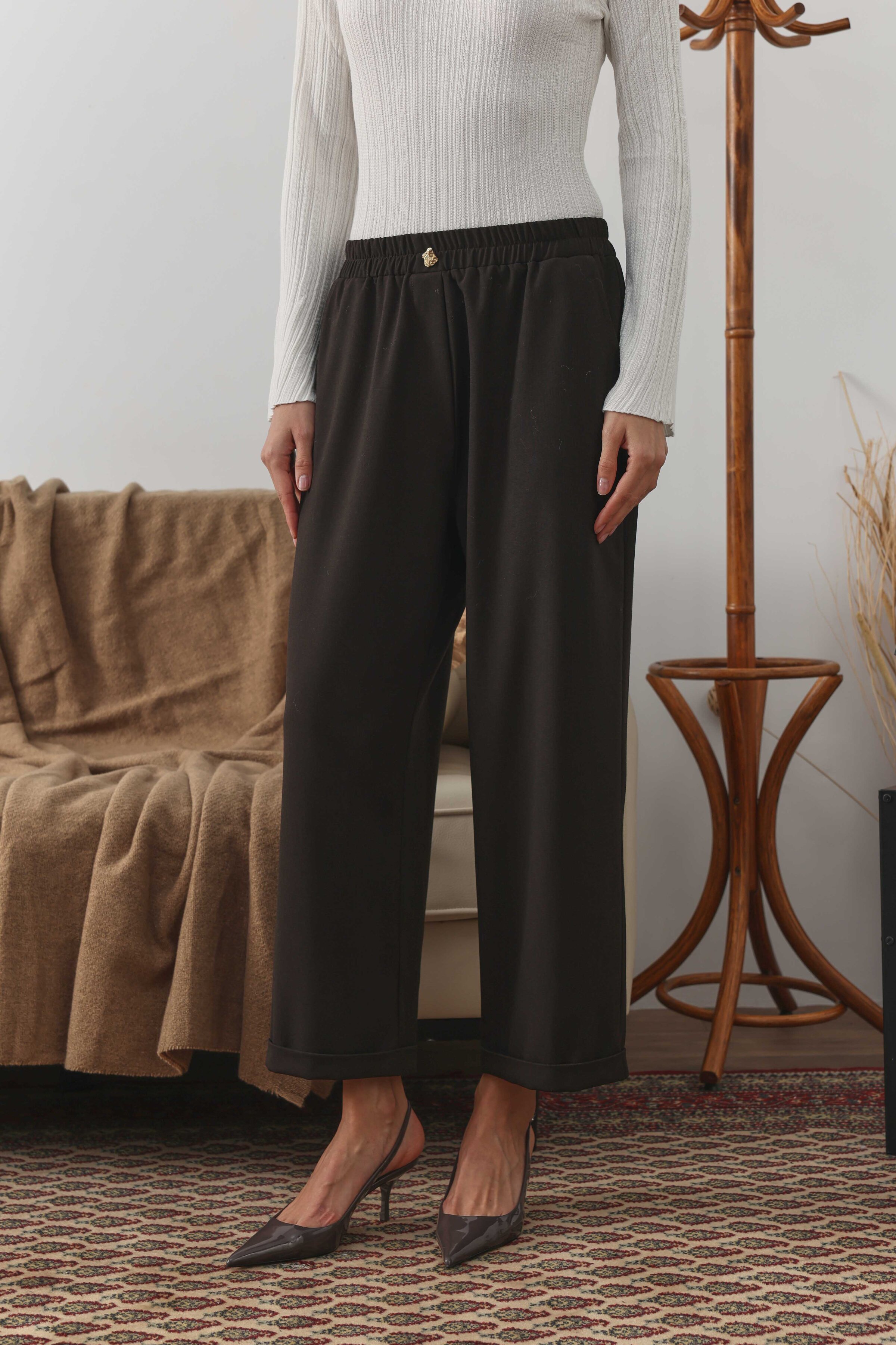 Geniş kesim pantolonun duble paça detayıyla modernize edilmiş hali, tüm kombinlerine uyum sağlayacak ve uzun yıllar sana eşlik edecek duble paça pantolon seninle! Özel dokuma kumaşın dokusu dört mevsim seni rahat hissettirecek. Elevated Essence koleksiyonundaki tüm parçalara uyum sağlayacak duble paça pantolonun zamansızlık ve rahatlığını deneyimle!