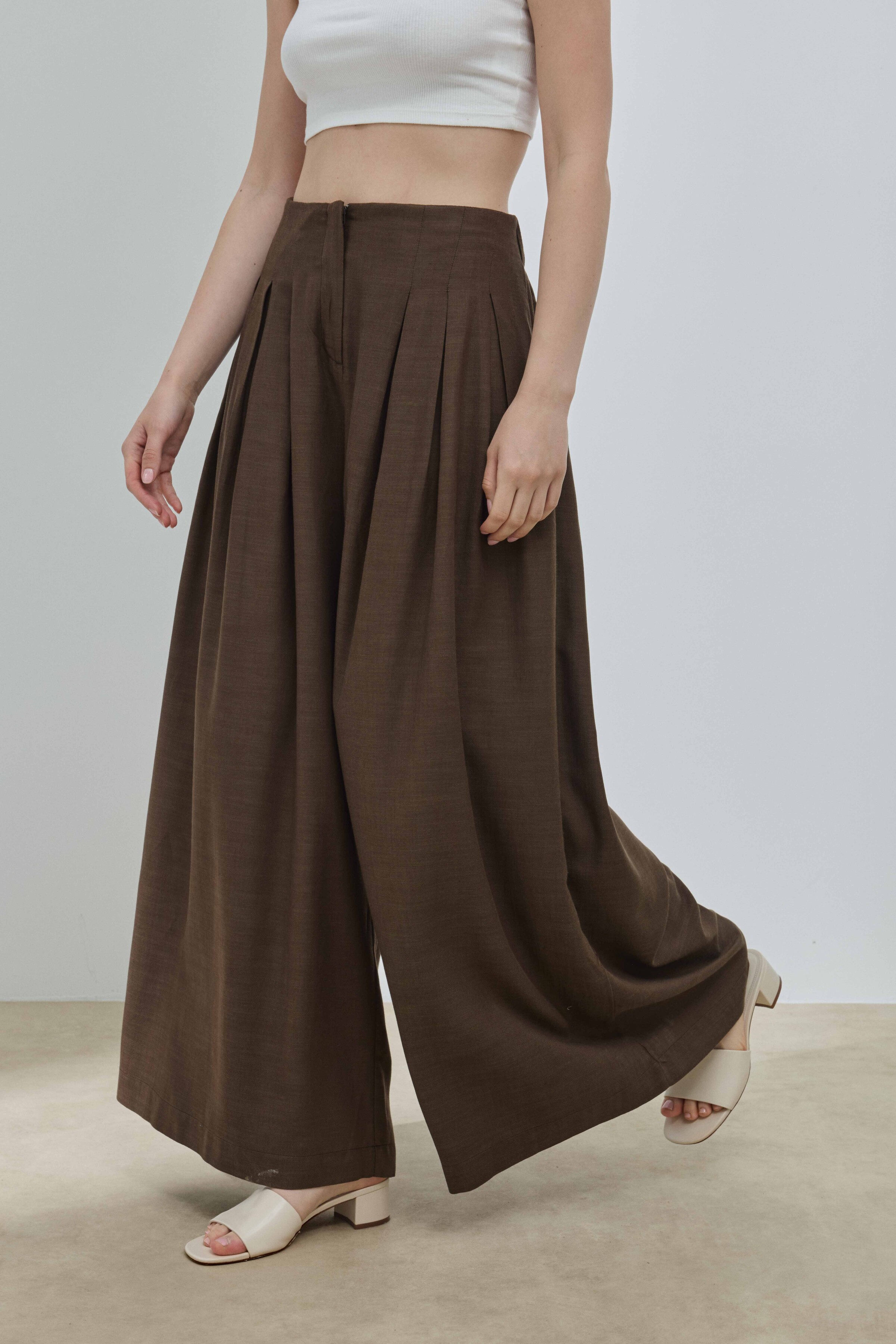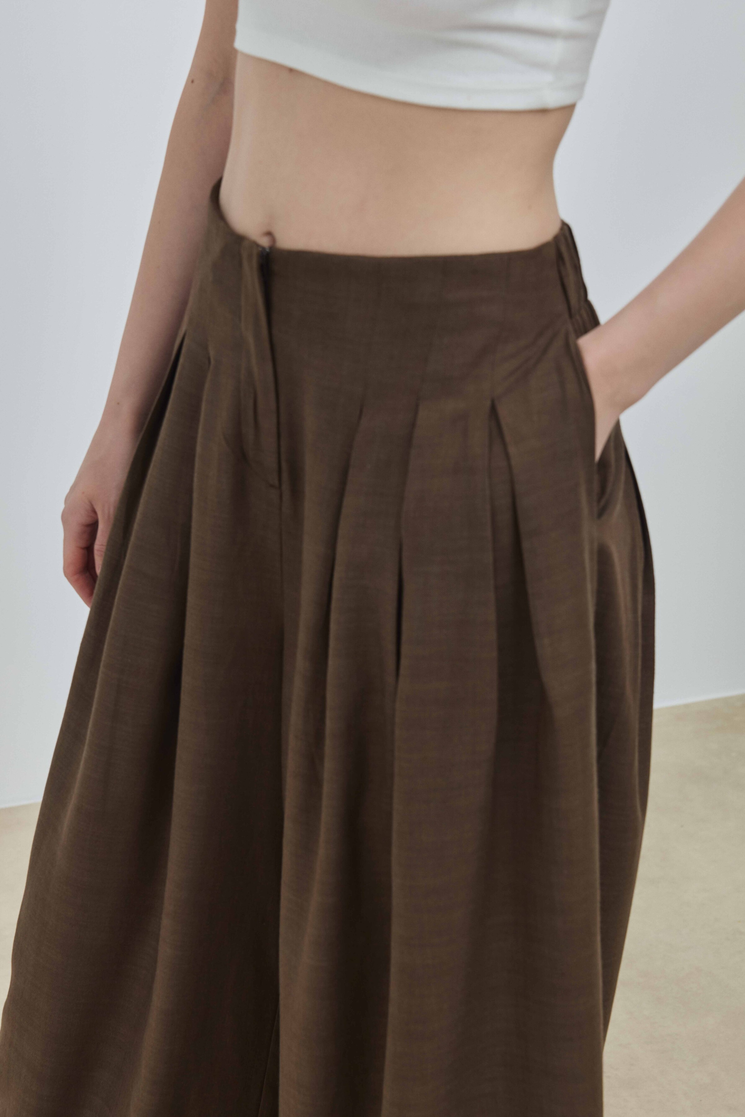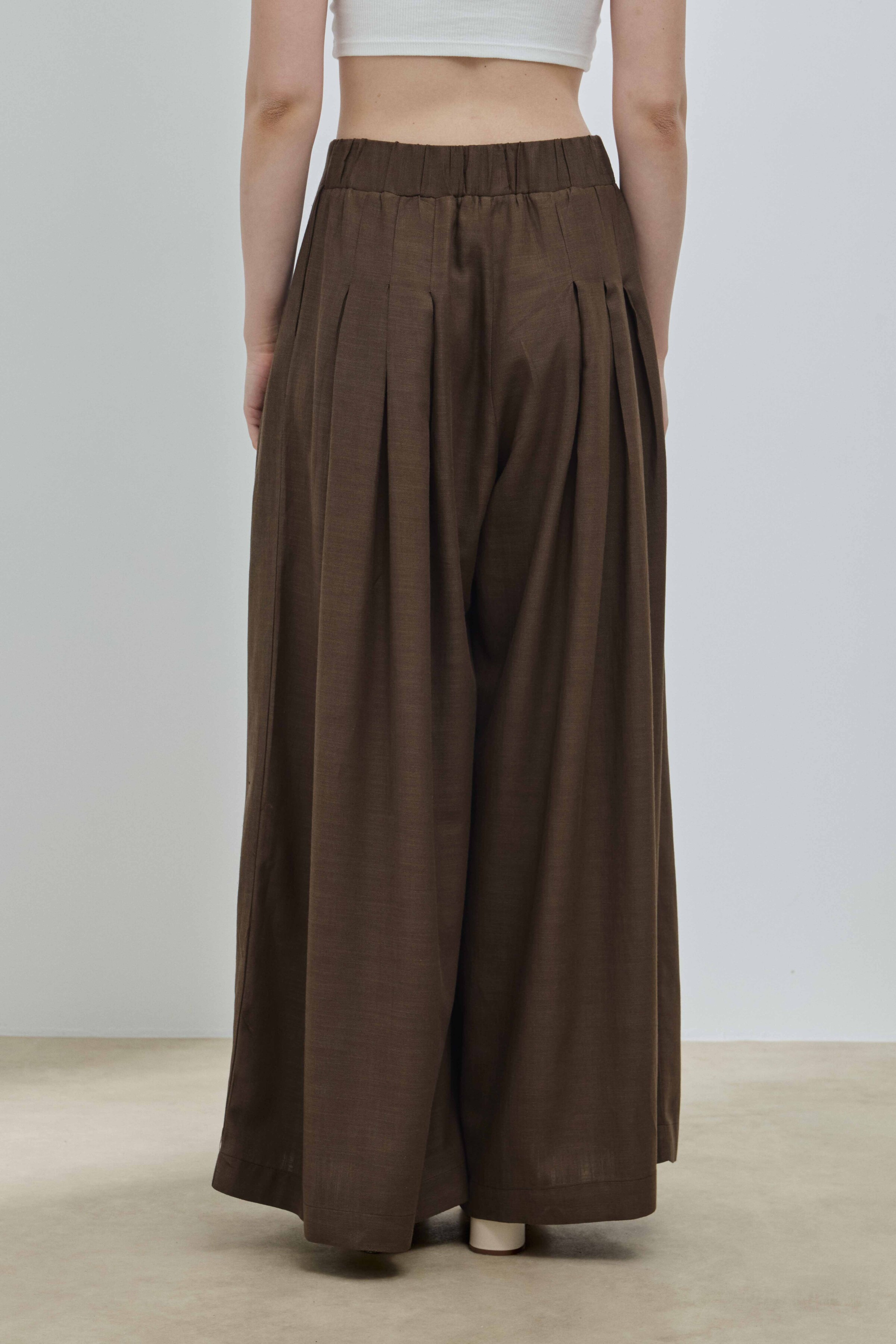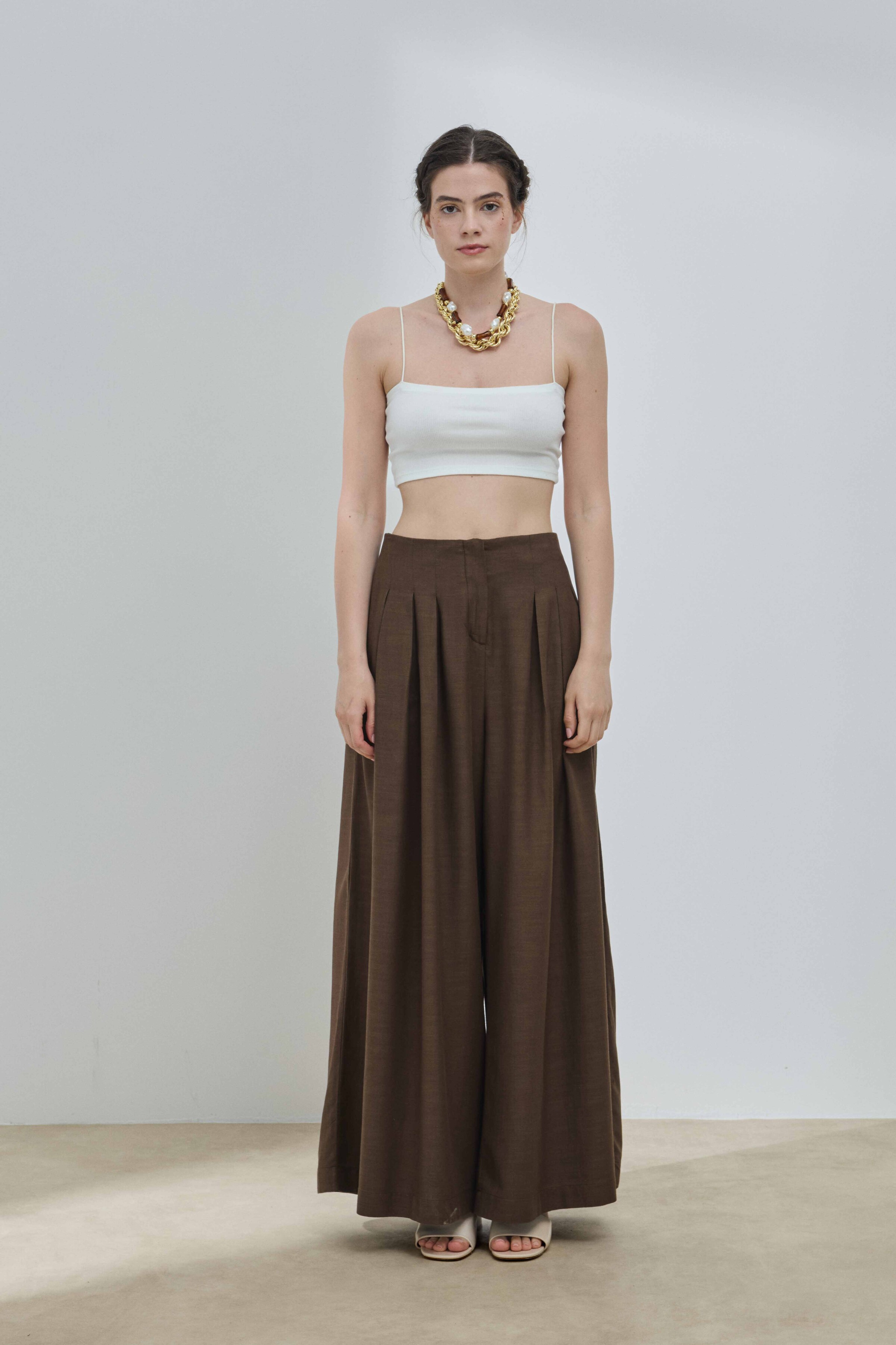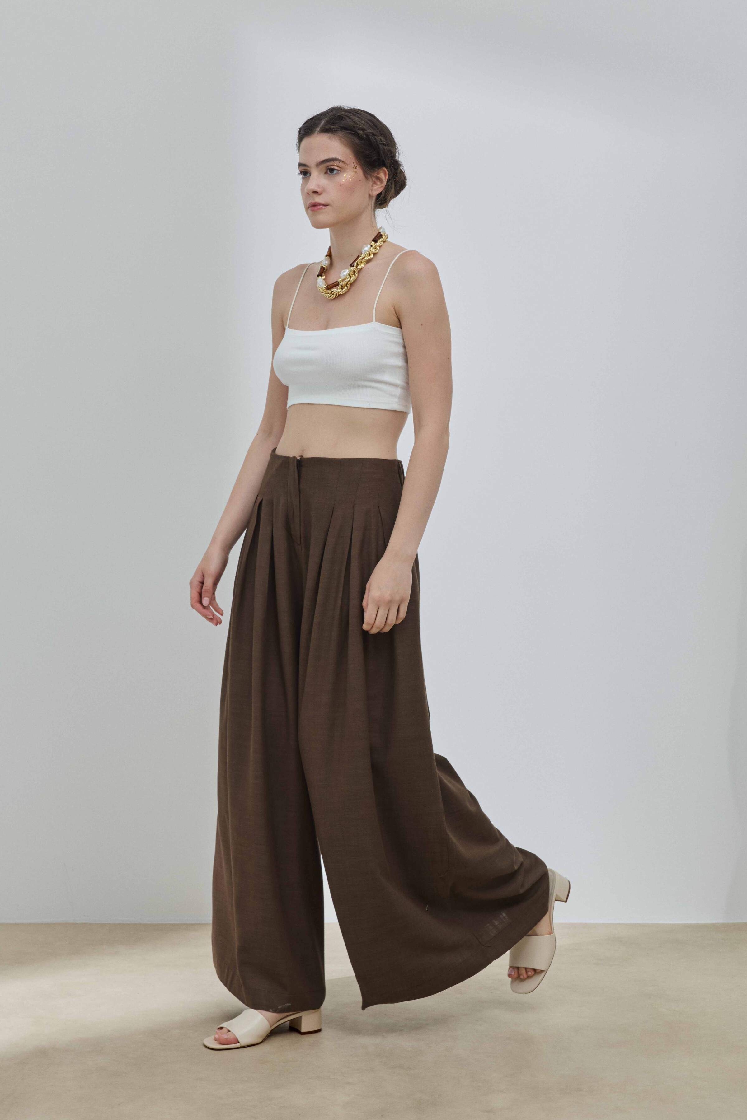 Tek parçada hem etek görünümü hem de pantolon rahatlığı arıyorsan pileli etek pantolon tam sana göre! Özel dokuma viskon, keten ve pamuk karışımlı kumaşın dokusu bütün yaz doğallığı ile seni rahat hissettirecek. Ethereal Roots koleksiyonundaki tüm parçalara uyum sağlayacak pileli etek pantolonun zamansızlık ve rahatlığını deneyimle!