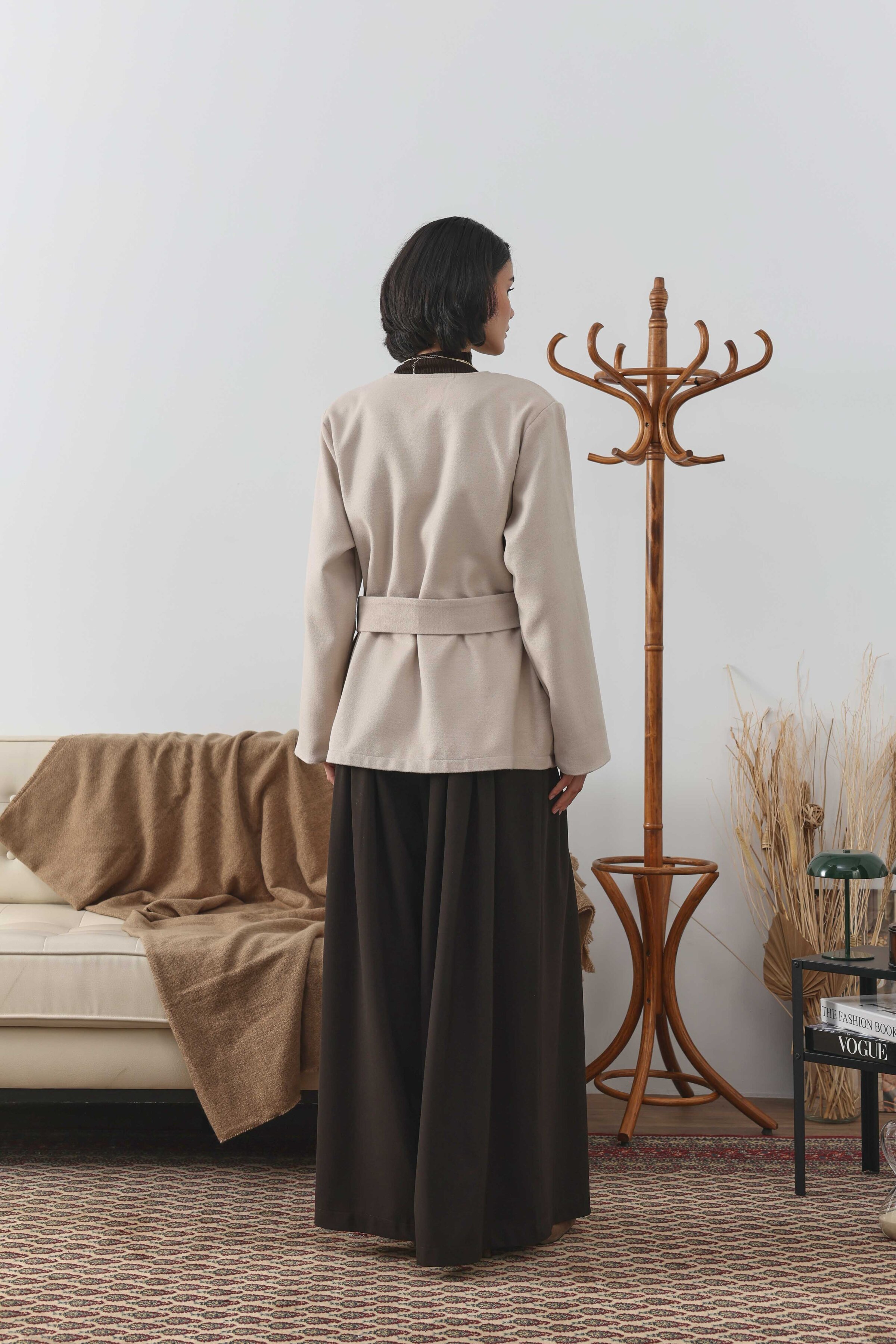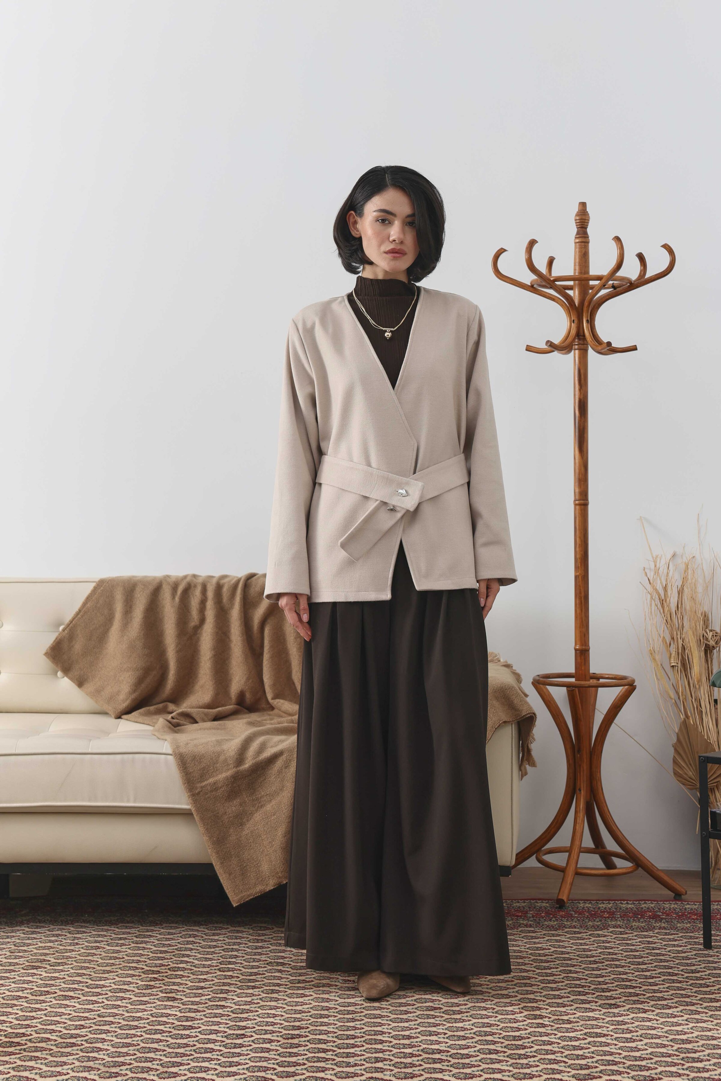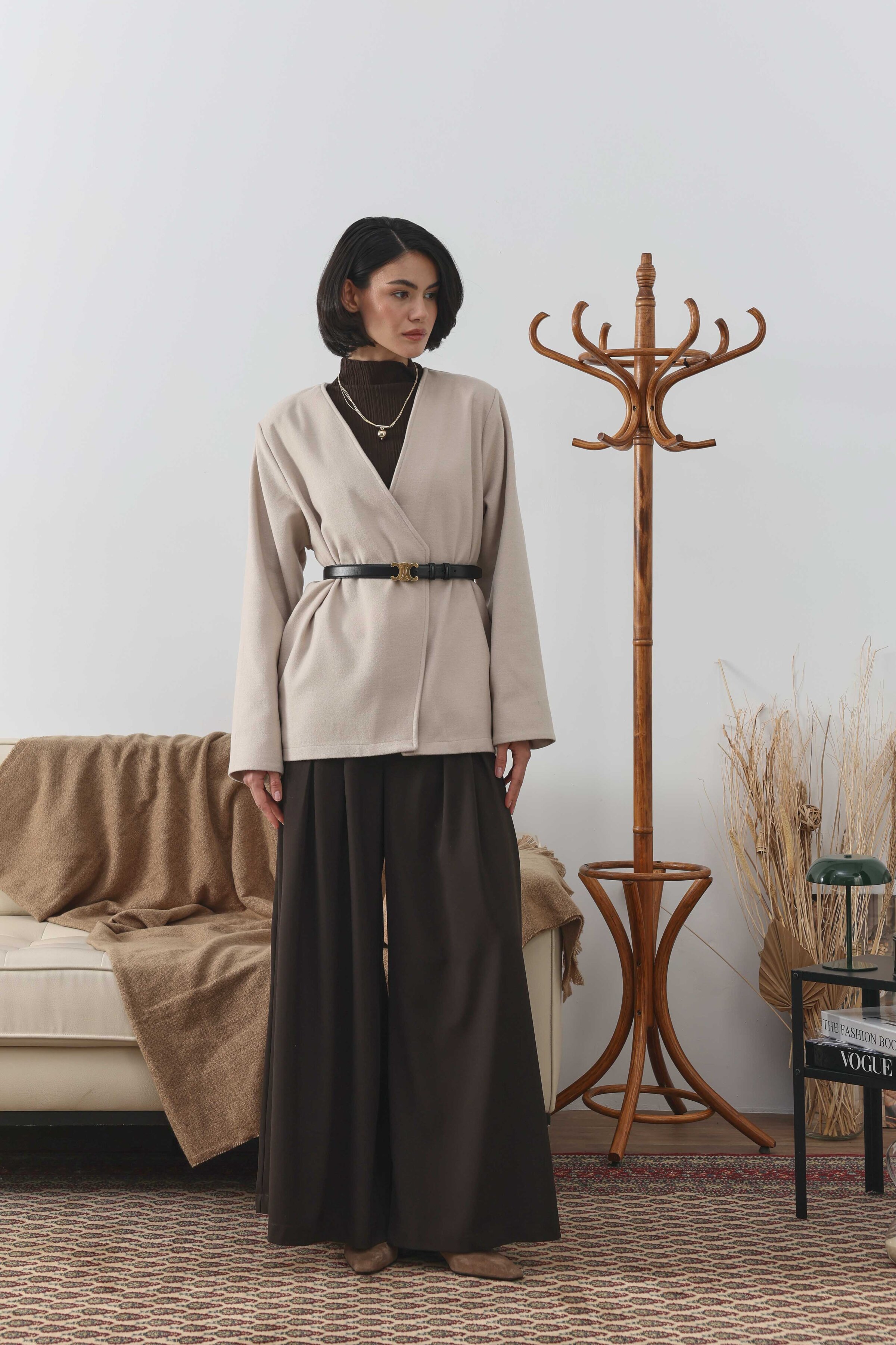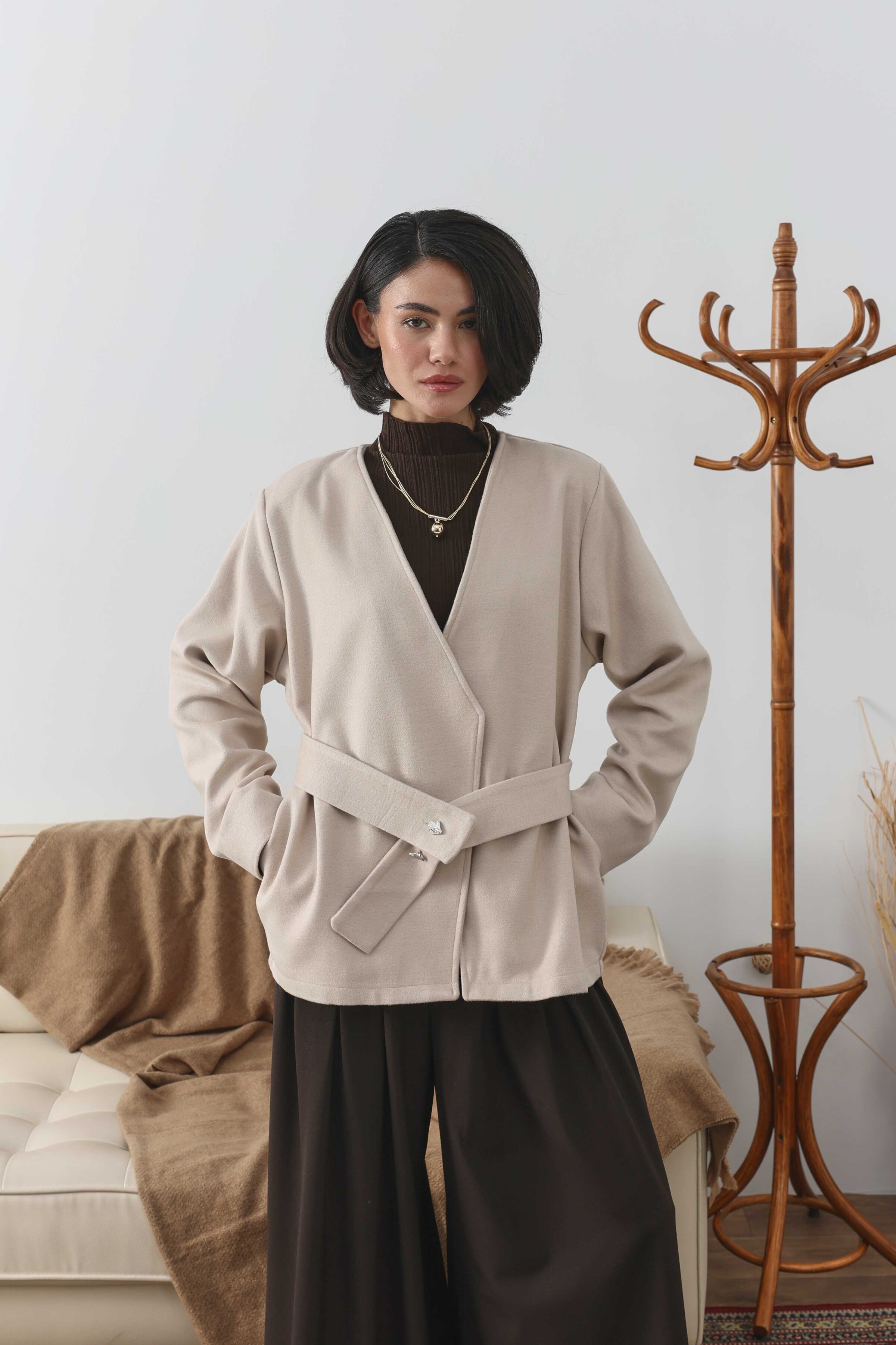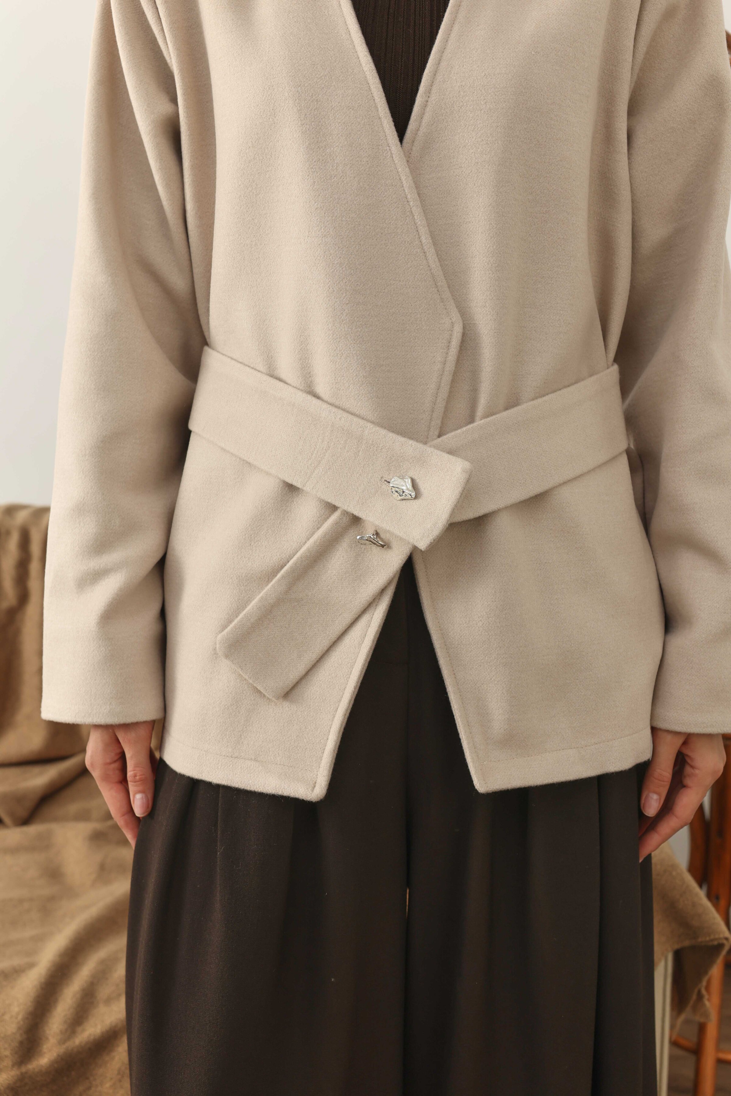 Kemer Detaylı Kaşe Ceket Ekru