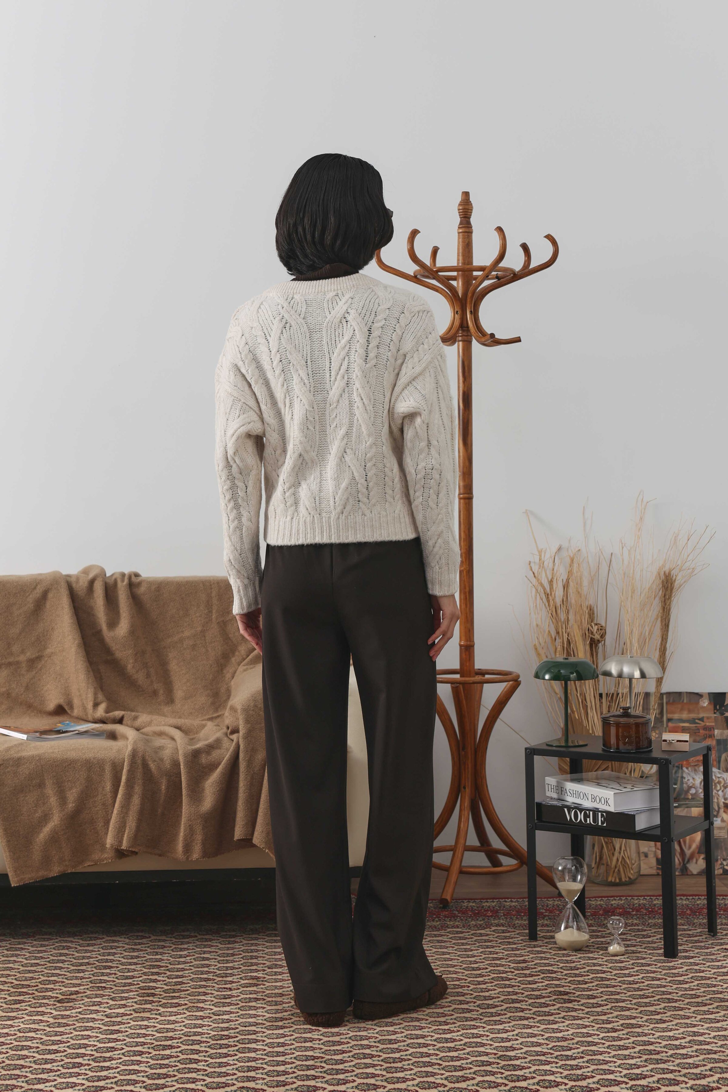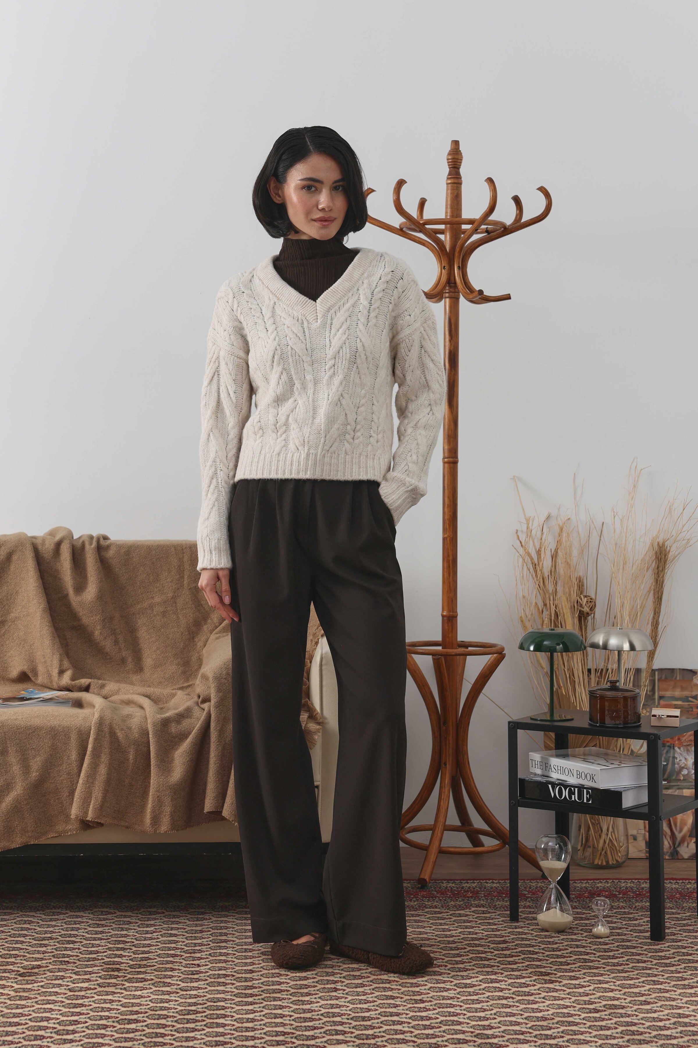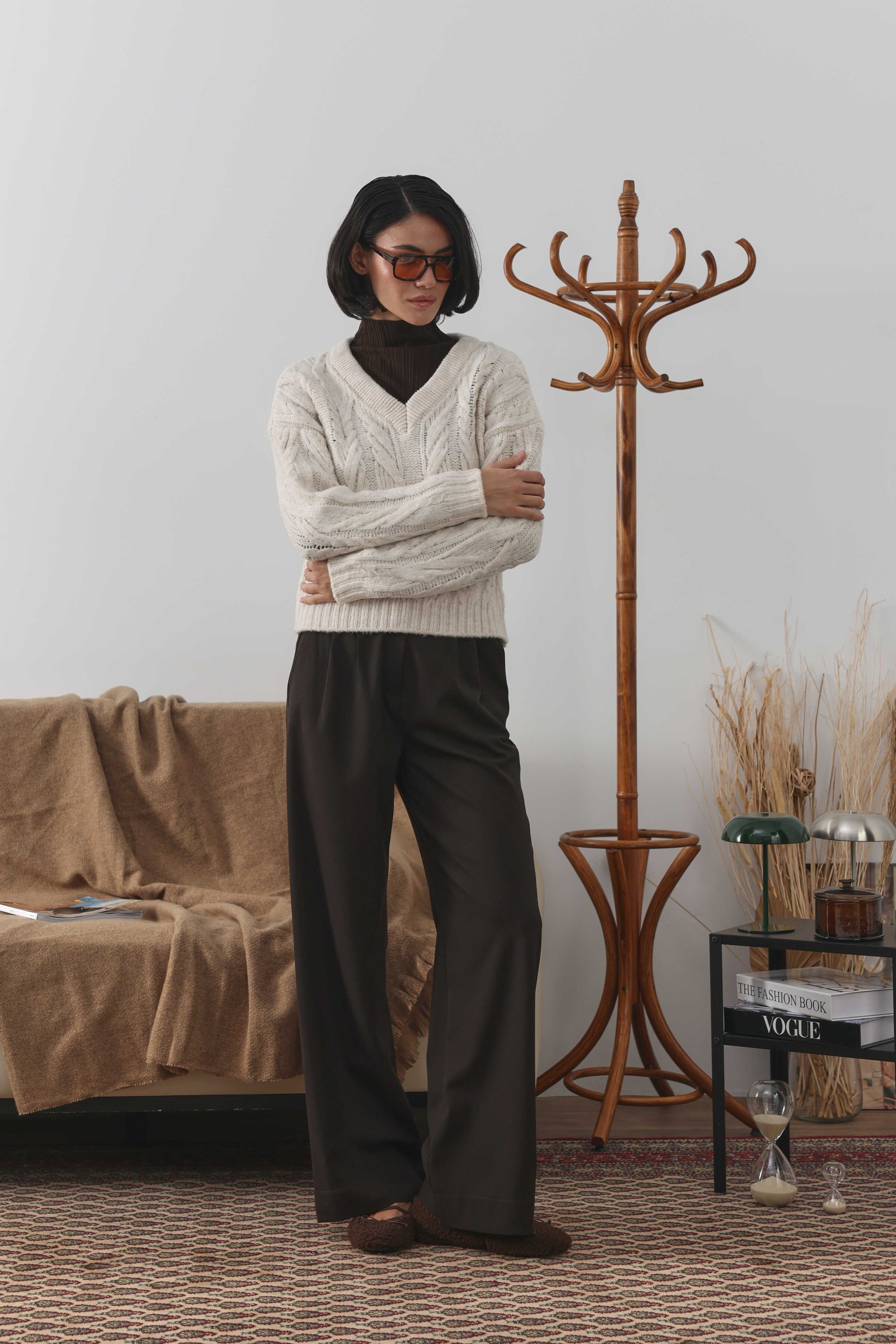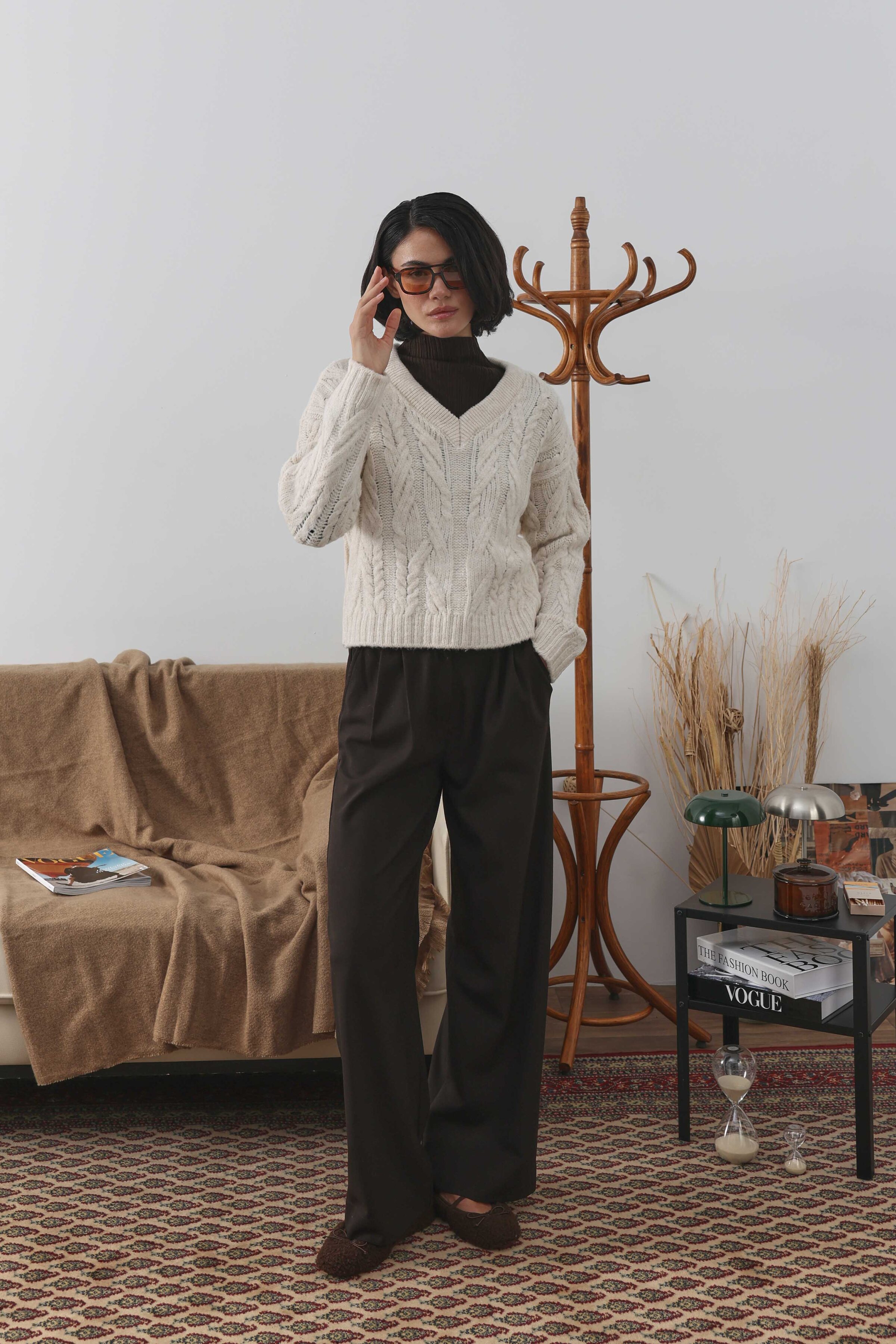 Örgülü Kısa Kazak Ekru