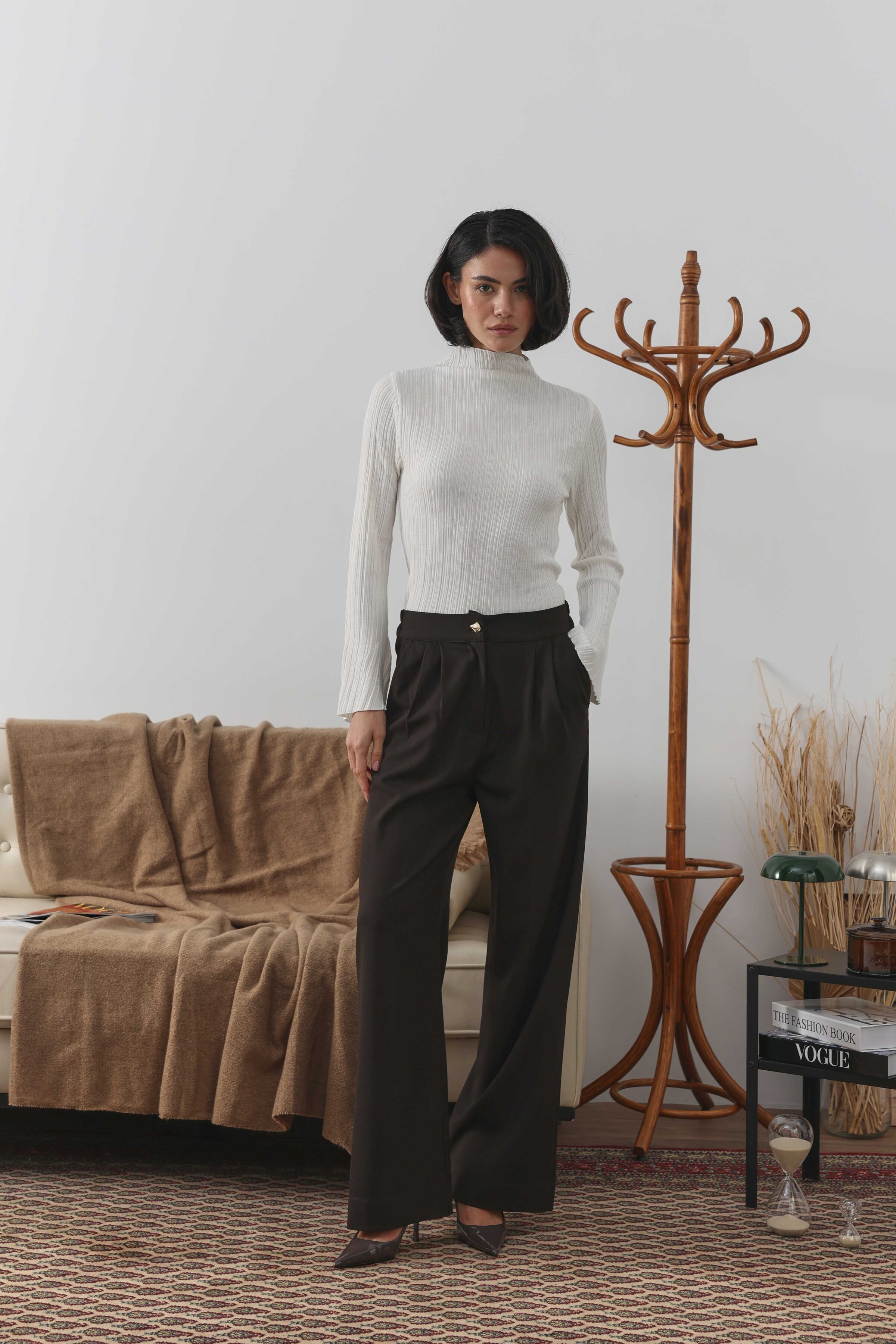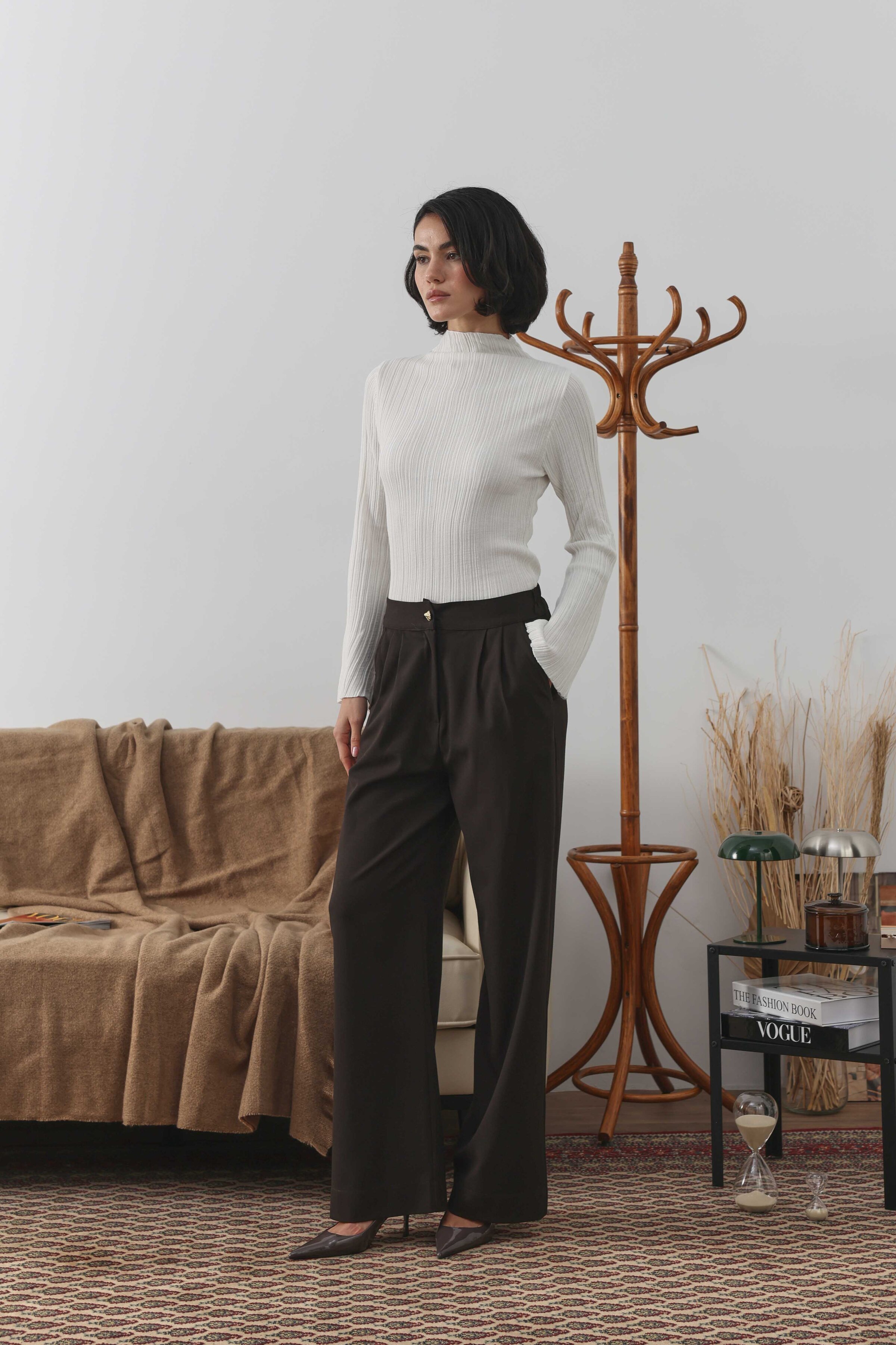 Palazzo pantolon zarif duruşu, özenli işçiliği ve doğal kumaşı ile kombinlerinde sana eşlik edecek. Her dolapta olması gereken palazzo pantolonunu özel dokuma mevsimlik kumaştan tercih et uzun yıllar kullan! Elevated Essence koleksiyonunun asil parçalarını palazzo pantolon ile kombinleyerek görünümünü öne çıkar.