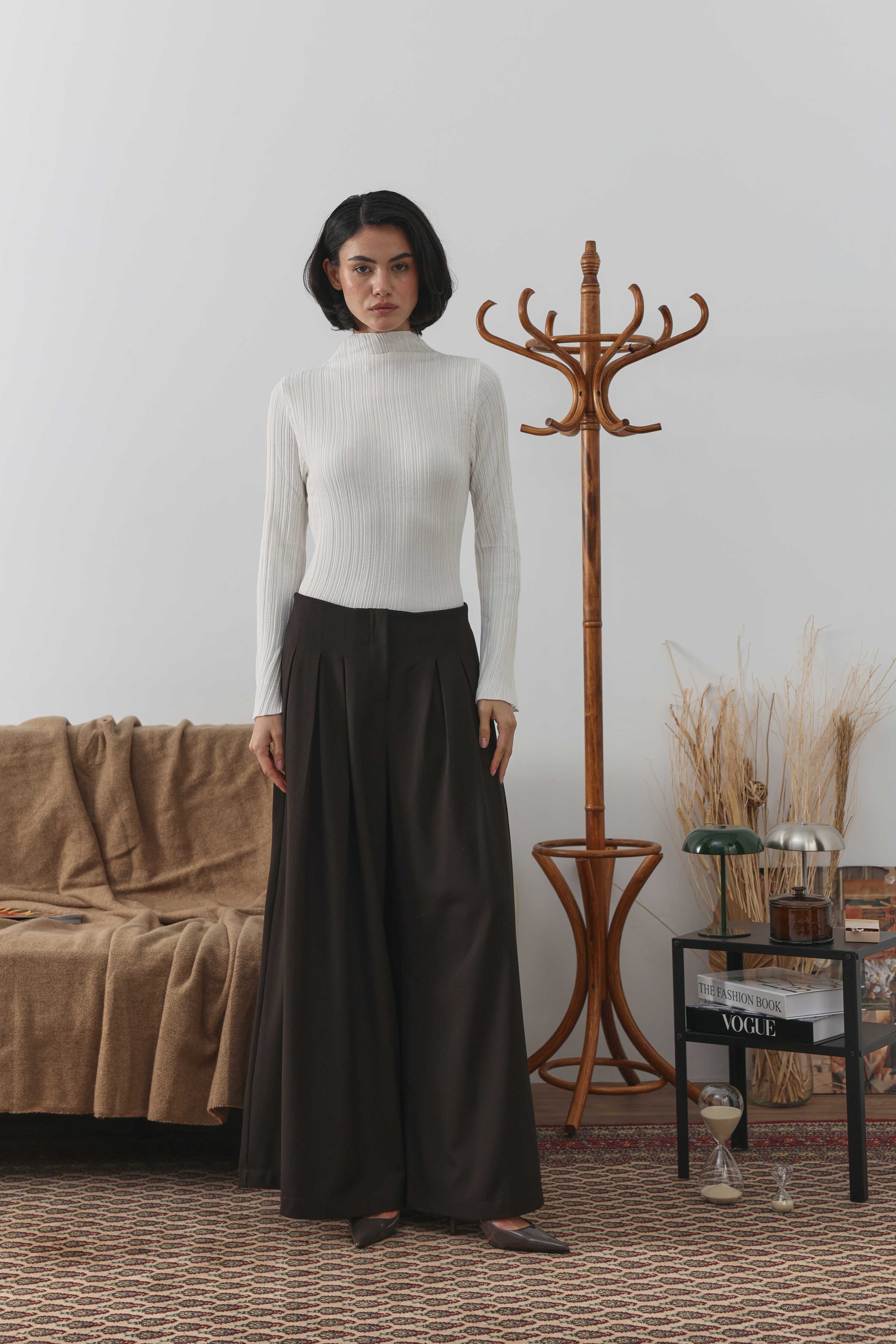 Tek parçada hem etek görünümü hem de pantolon rahatlığı arıyorsan pileli etek pantolon tam sana göre! Özel dokuma kumaşın dokusu dört mevsim seni rahat hissettirecek. Elevated Essence koleksiyonundaki tüm parçalara uyum sağlayacak pileli etek pantolonun zamansızlık ve rahatlığını deneyimle!