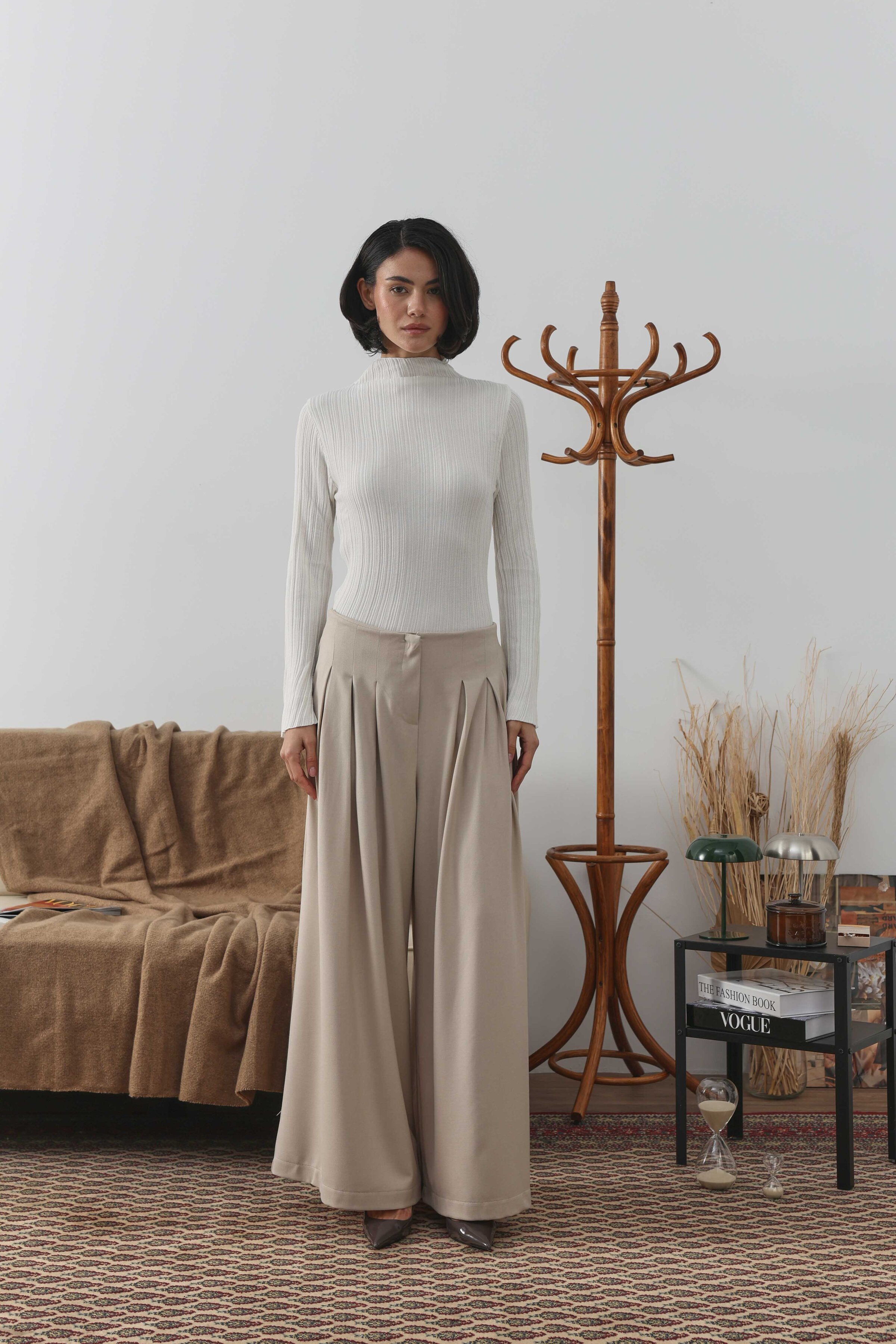Tek parçada hem etek görünümü hem de pantolon rahatlığı arıyorsan pileli etek pantolon tam sana göre! Özel dokuma kumaşın dokusu dört mevsim seni rahat hissettirecek. Elevated Essence koleksiyonundaki tüm parçalara uyum sağlayacak pileli etek pantolonun zamansızlık ve rahatlığını deneyimle!