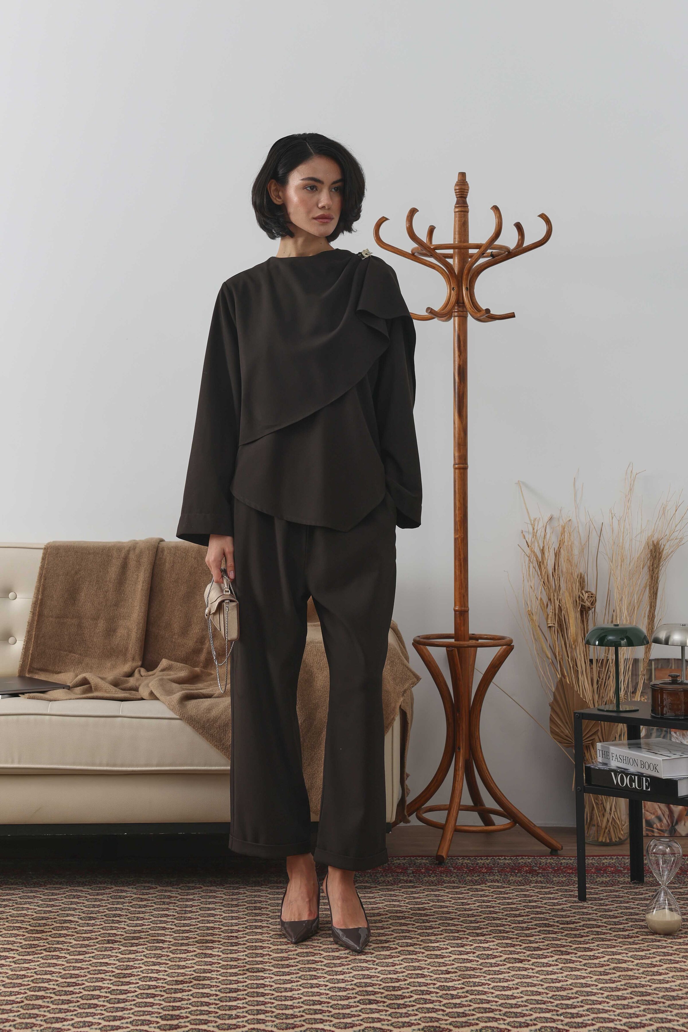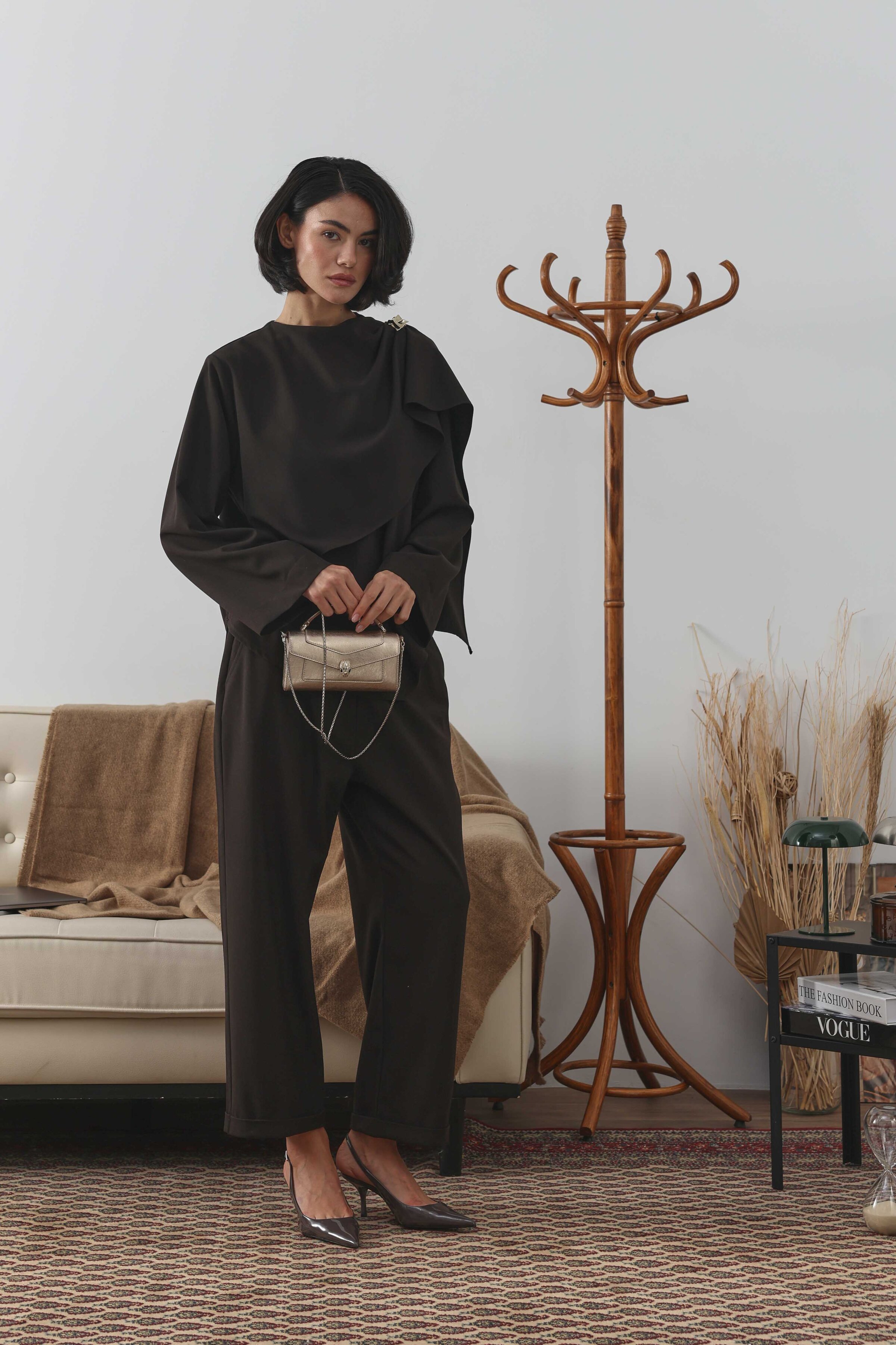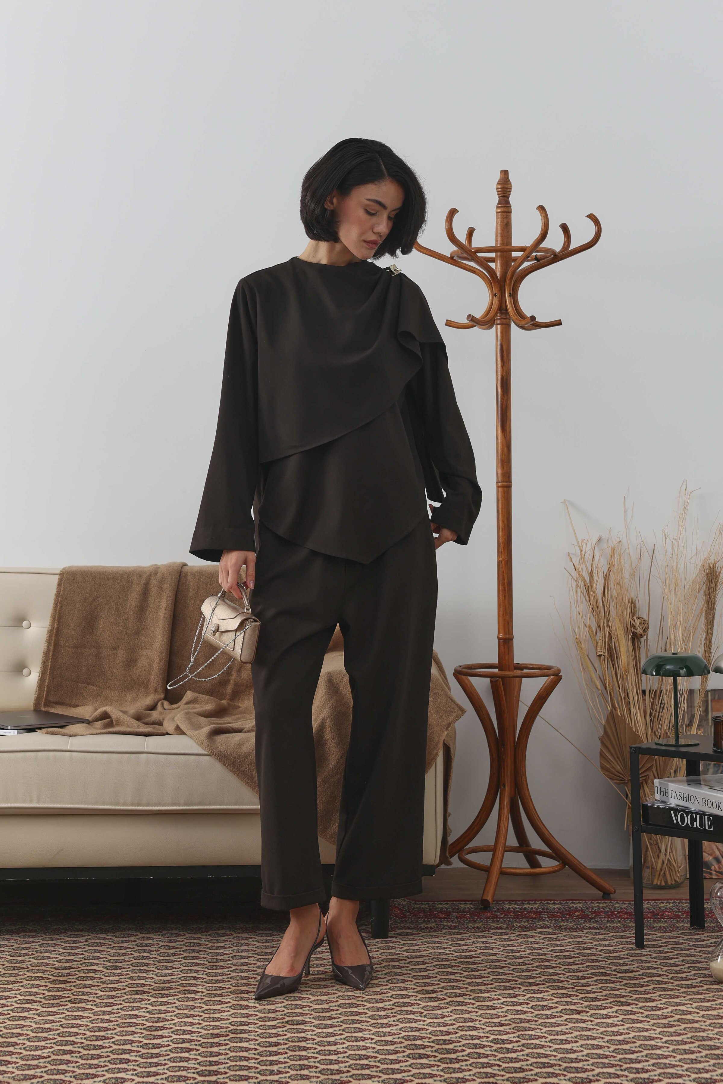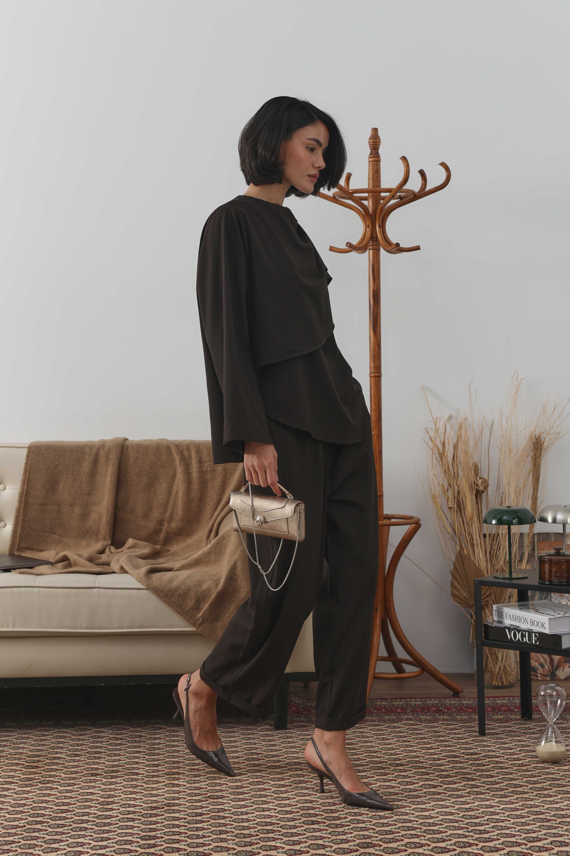 Şal ve broş detayı görünümünü bir üst seviyeye çıkartırken zamansız bluz modeli zarafetiyle dolabının vazgeçilmezi olacak. Özel dokuma sonbahar kışa özel kumaşın dokusu dört mevsim seni rahat hissettirecek. Elevated Essence koleksiyonunun minimal ve zamansız çizgilerini taşıyan şal detaylı bluz uzun yıllar seninle!