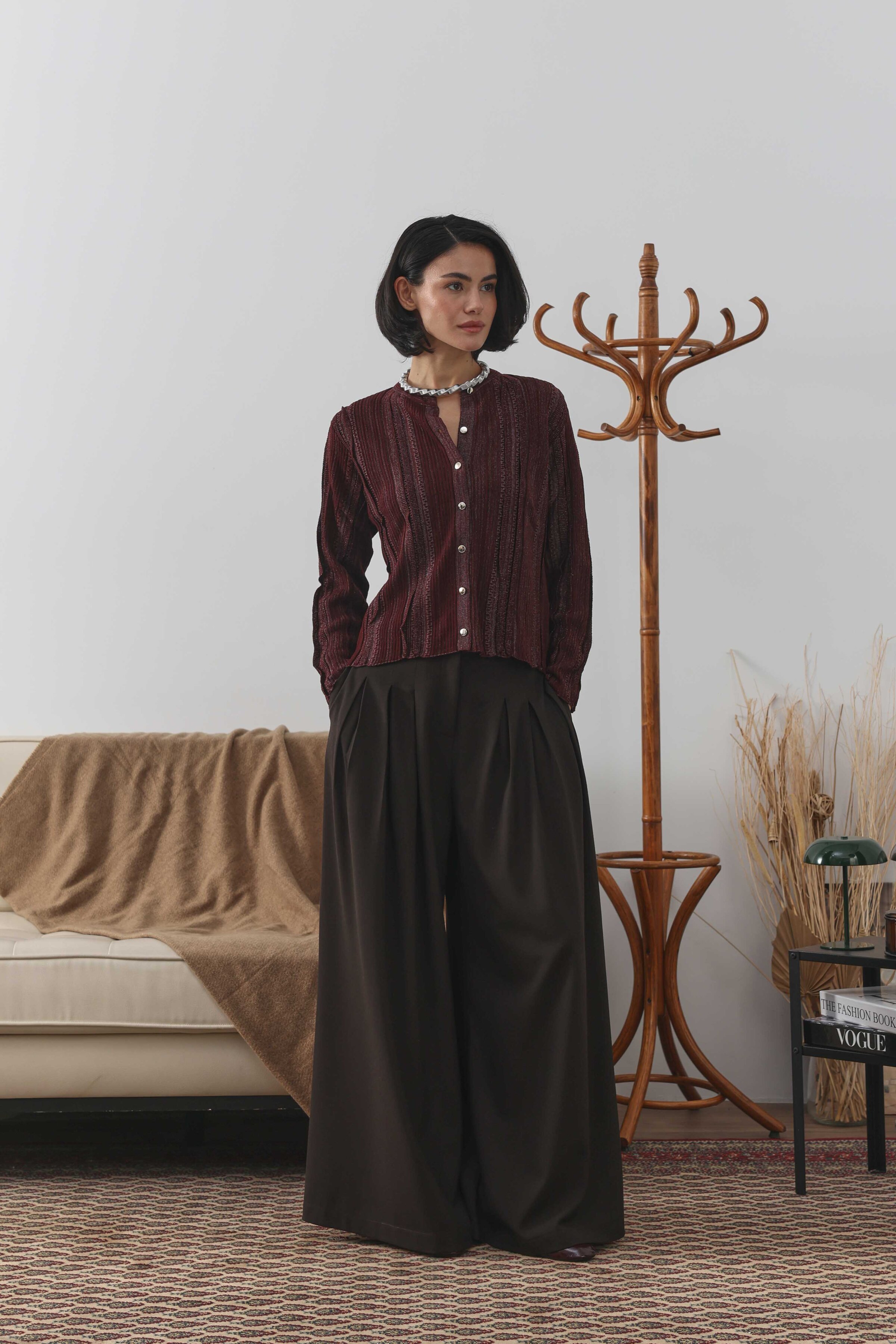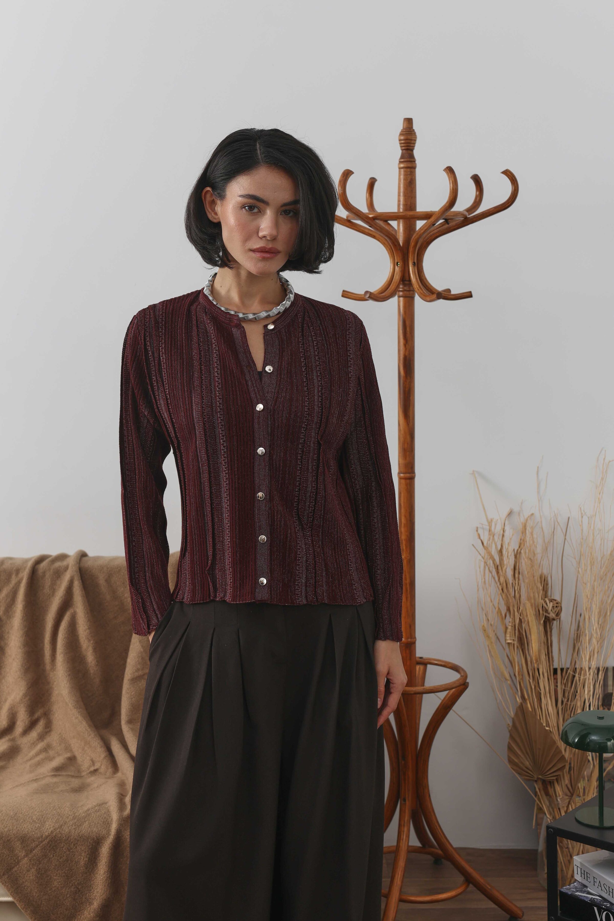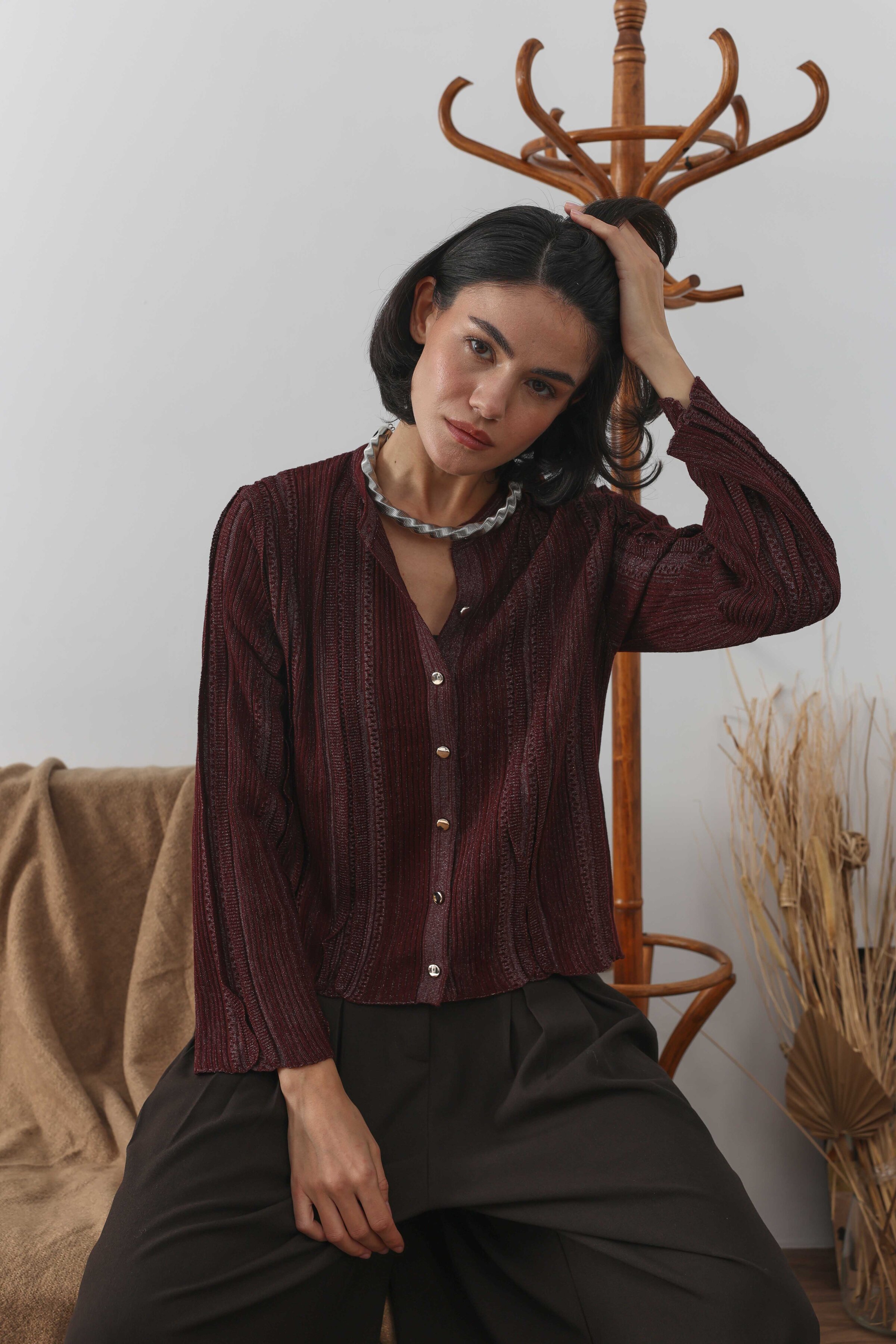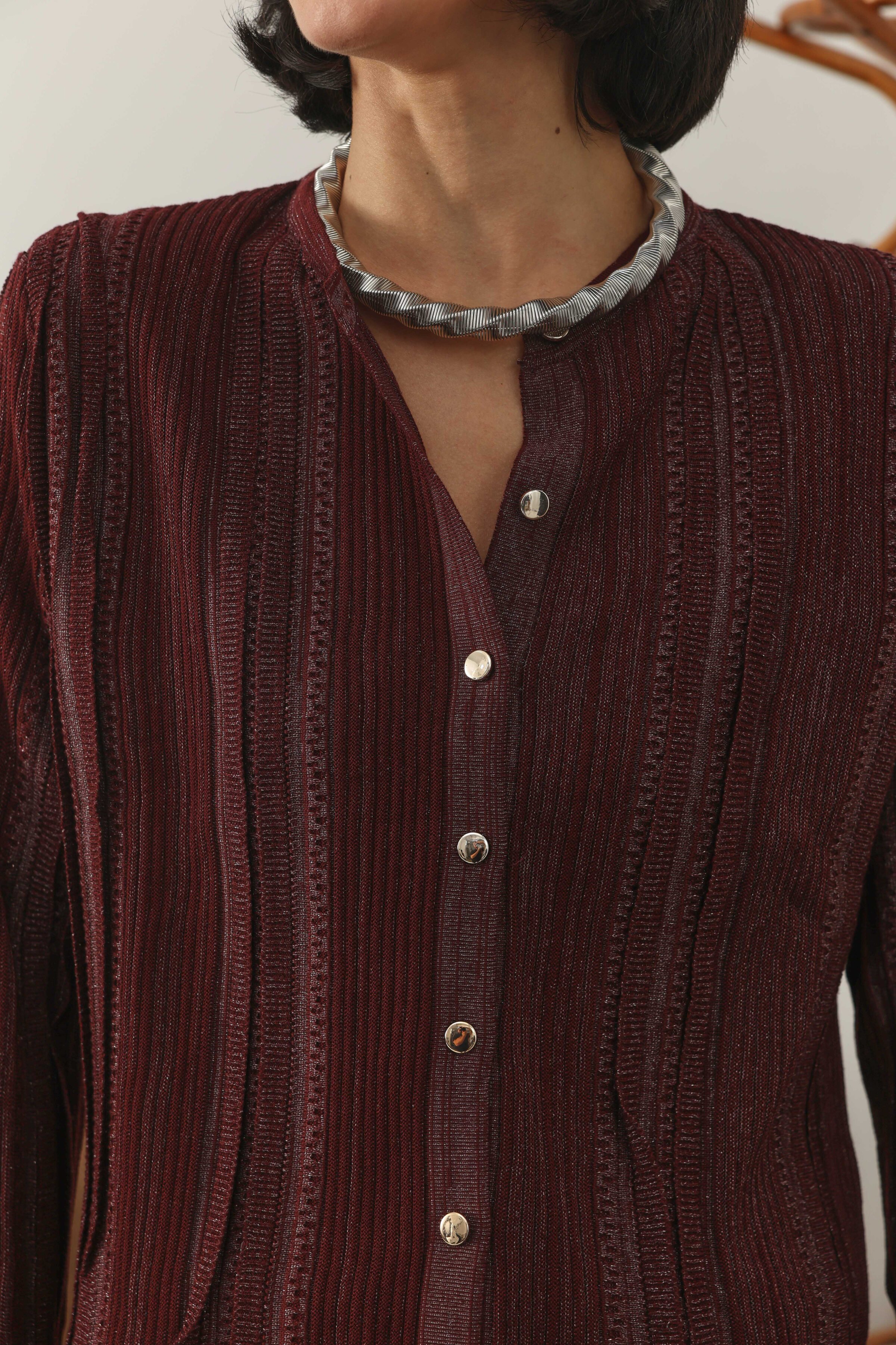Simli Kısa Hırka Bordo