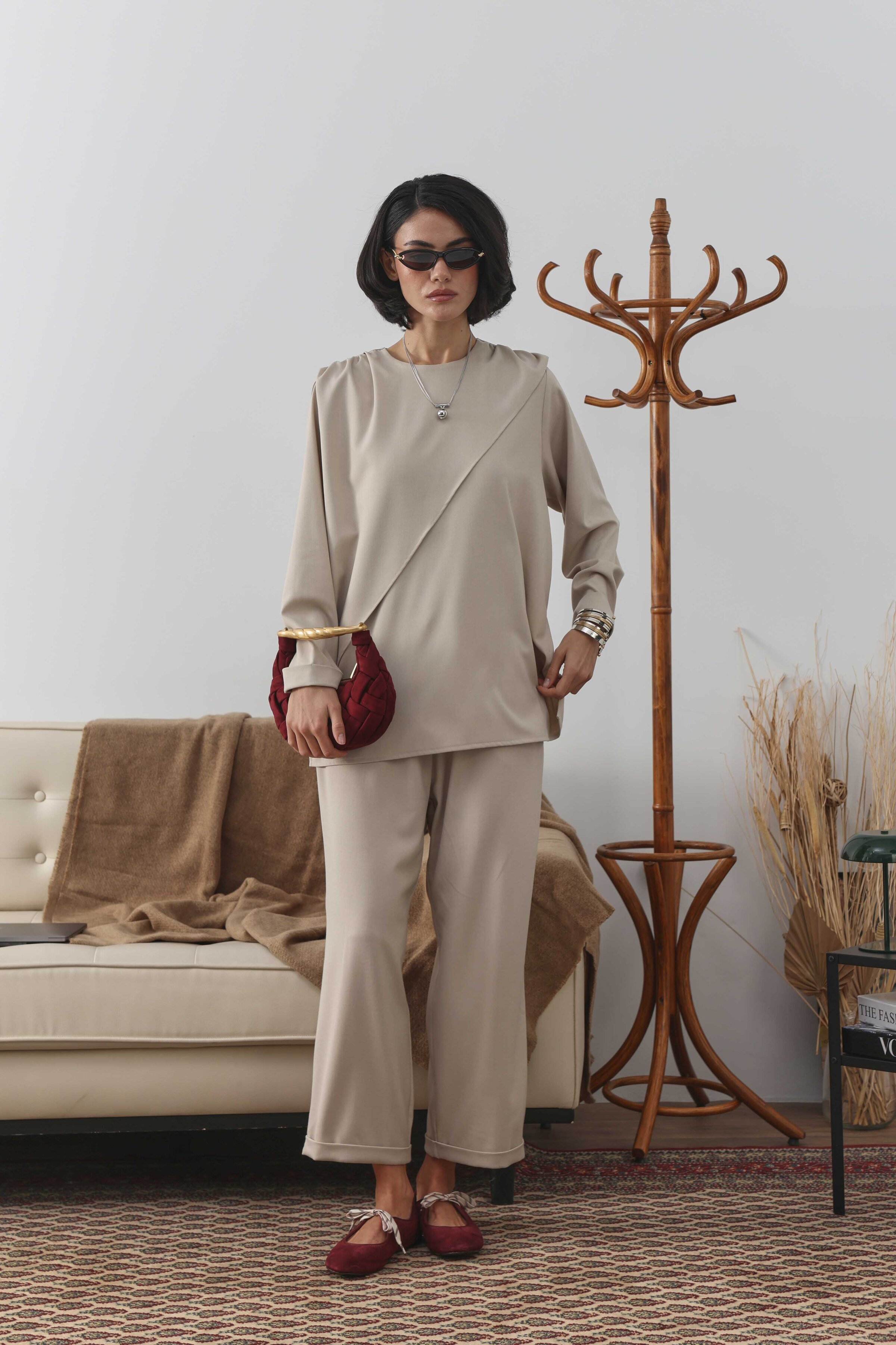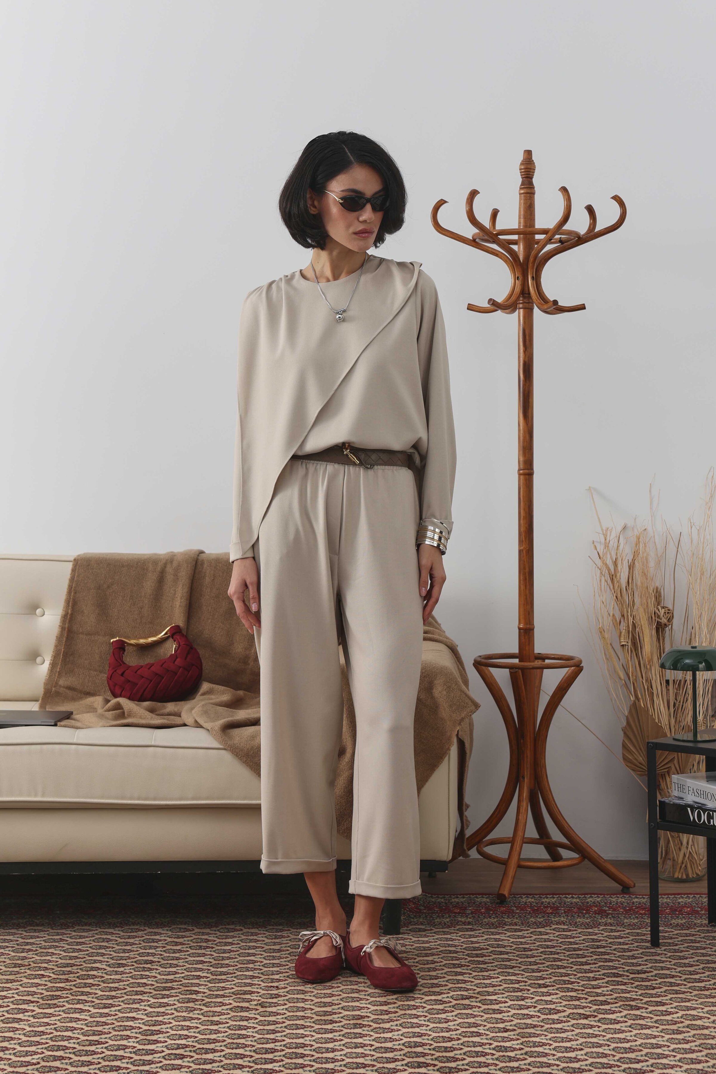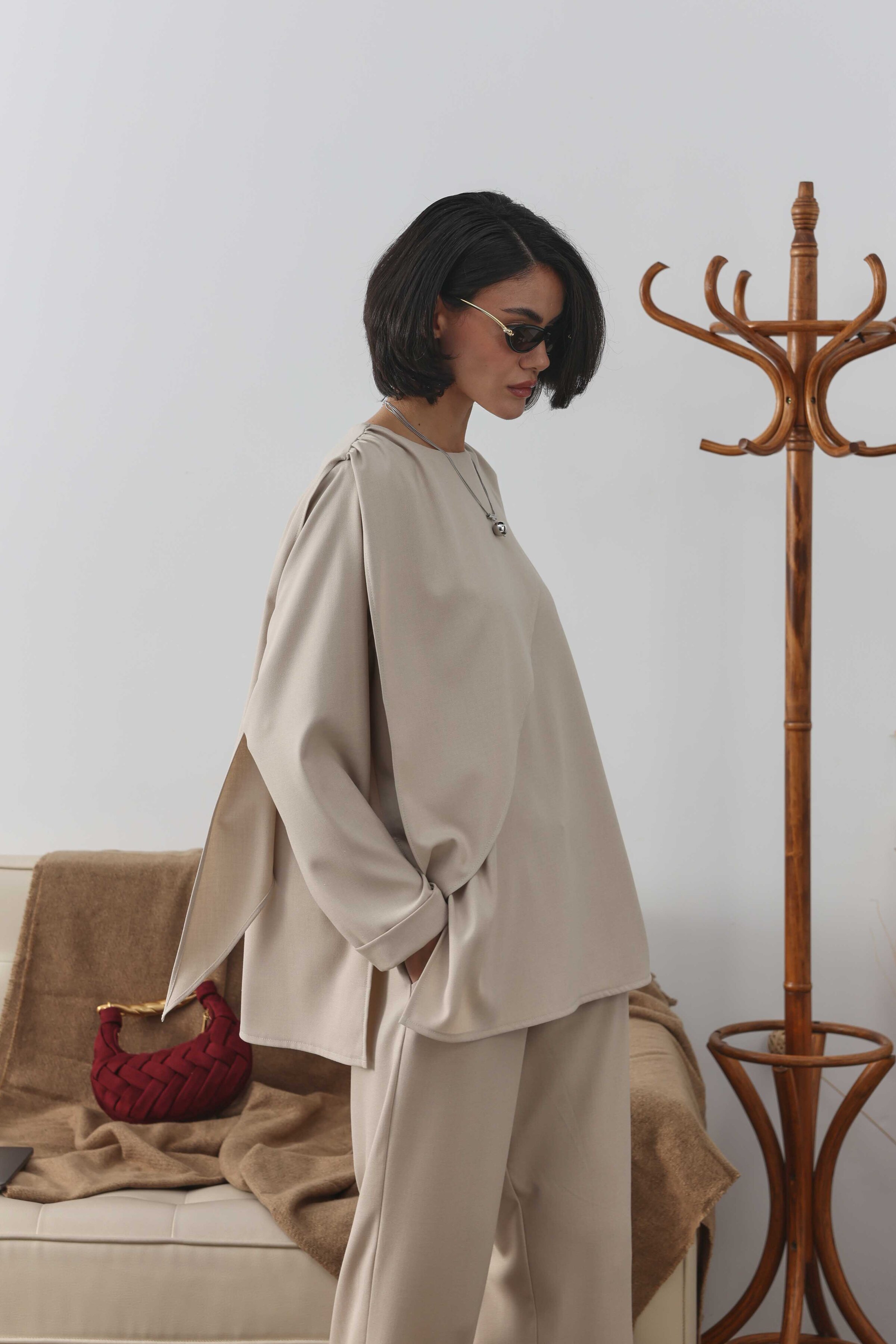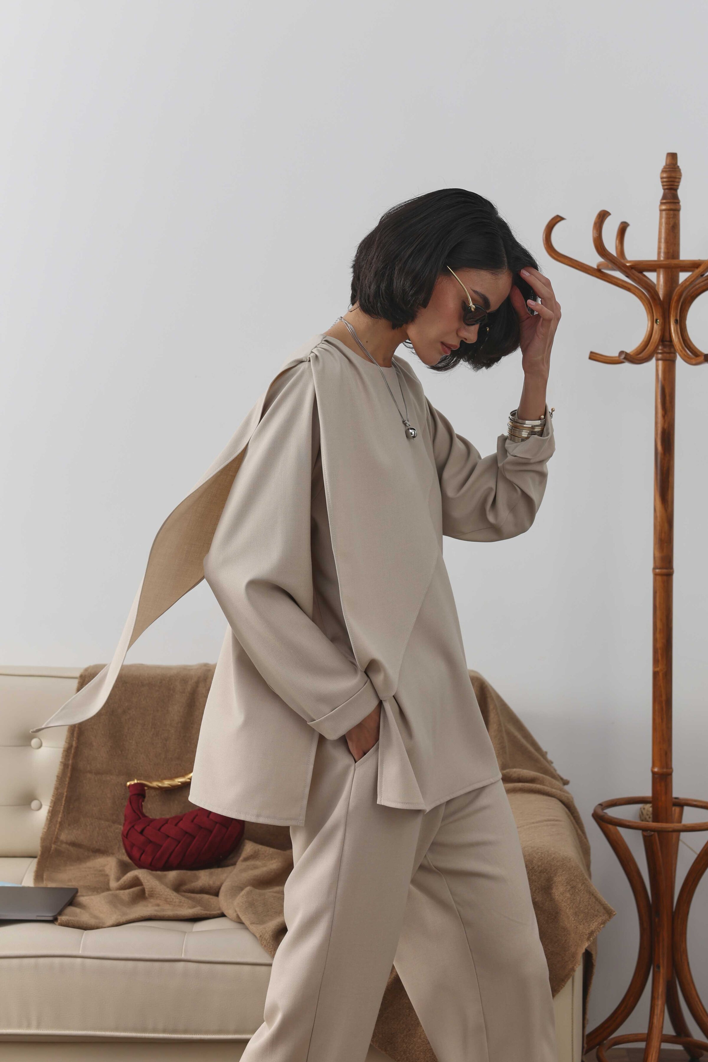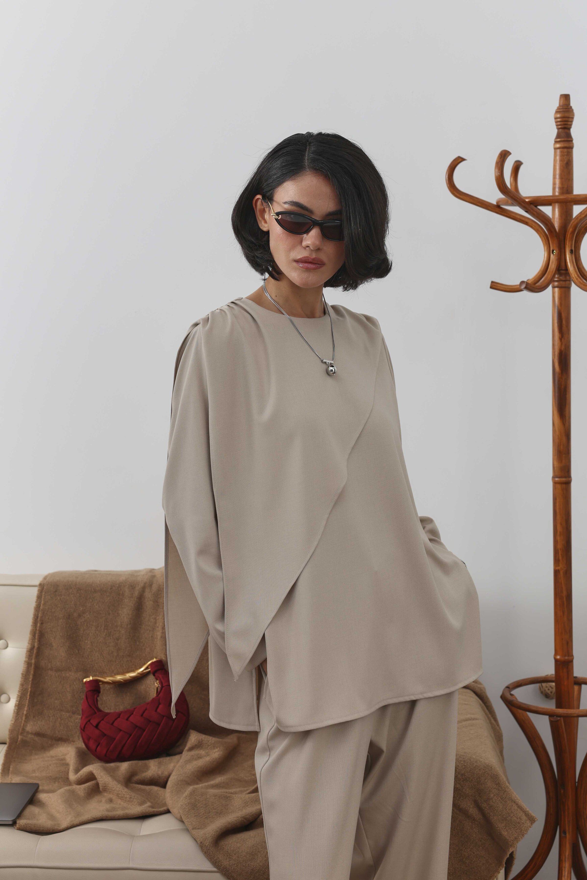 Klasik görünümden uzaklaşmak isteyenlere sezonun trendi pelerin detayı, verev bir dokunuş ile bambaşka bir görünüme ulaştı. Tek parça ile şıklığı yakalayacağın Verev Pelerinli Gömlek seninle! Elevated Essence koleksiyonunun minimal ve zamansız çizgilerini taşıyan bluzu uzun yıllar kullan!
