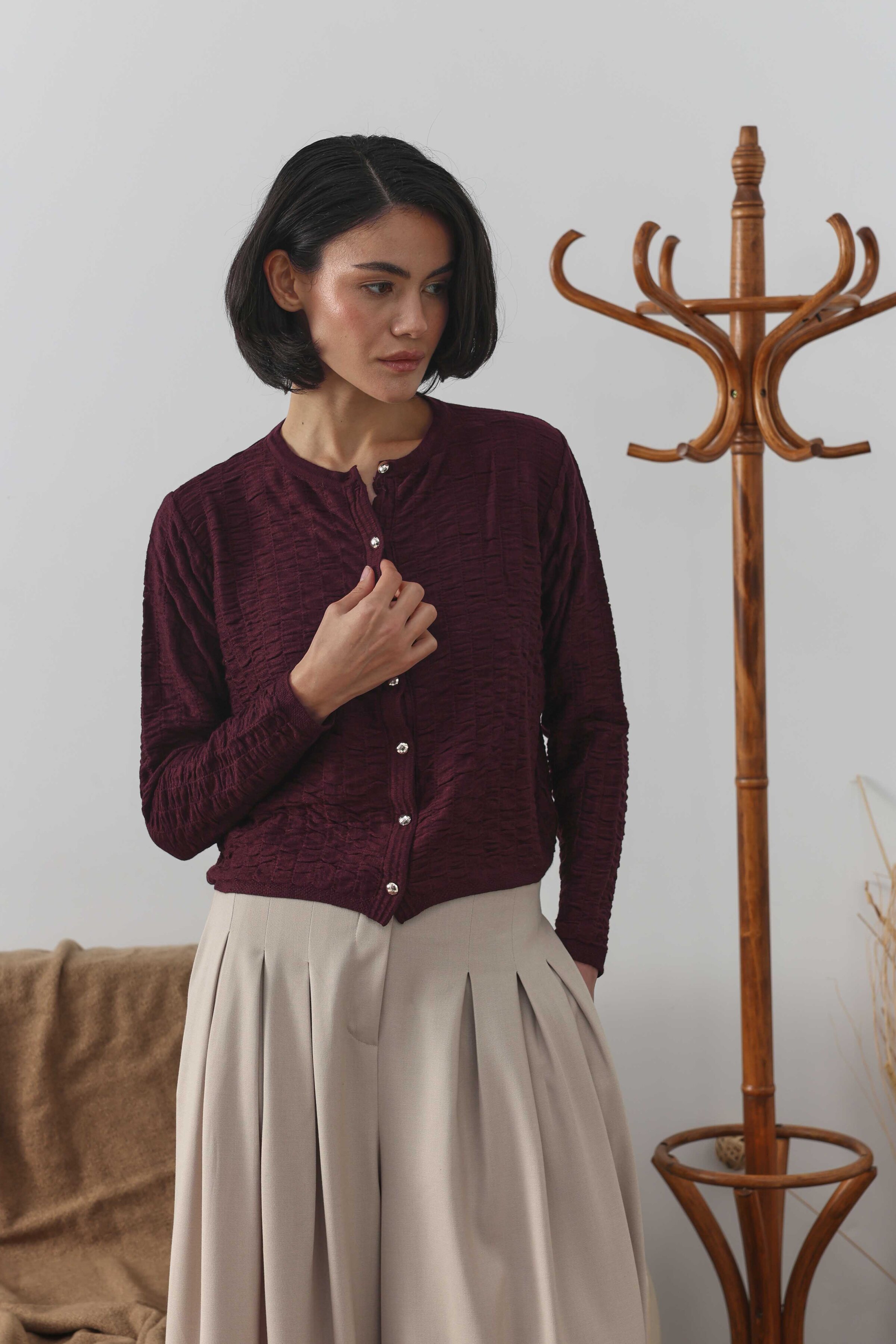 Viskon Kısa Hırka Bordo